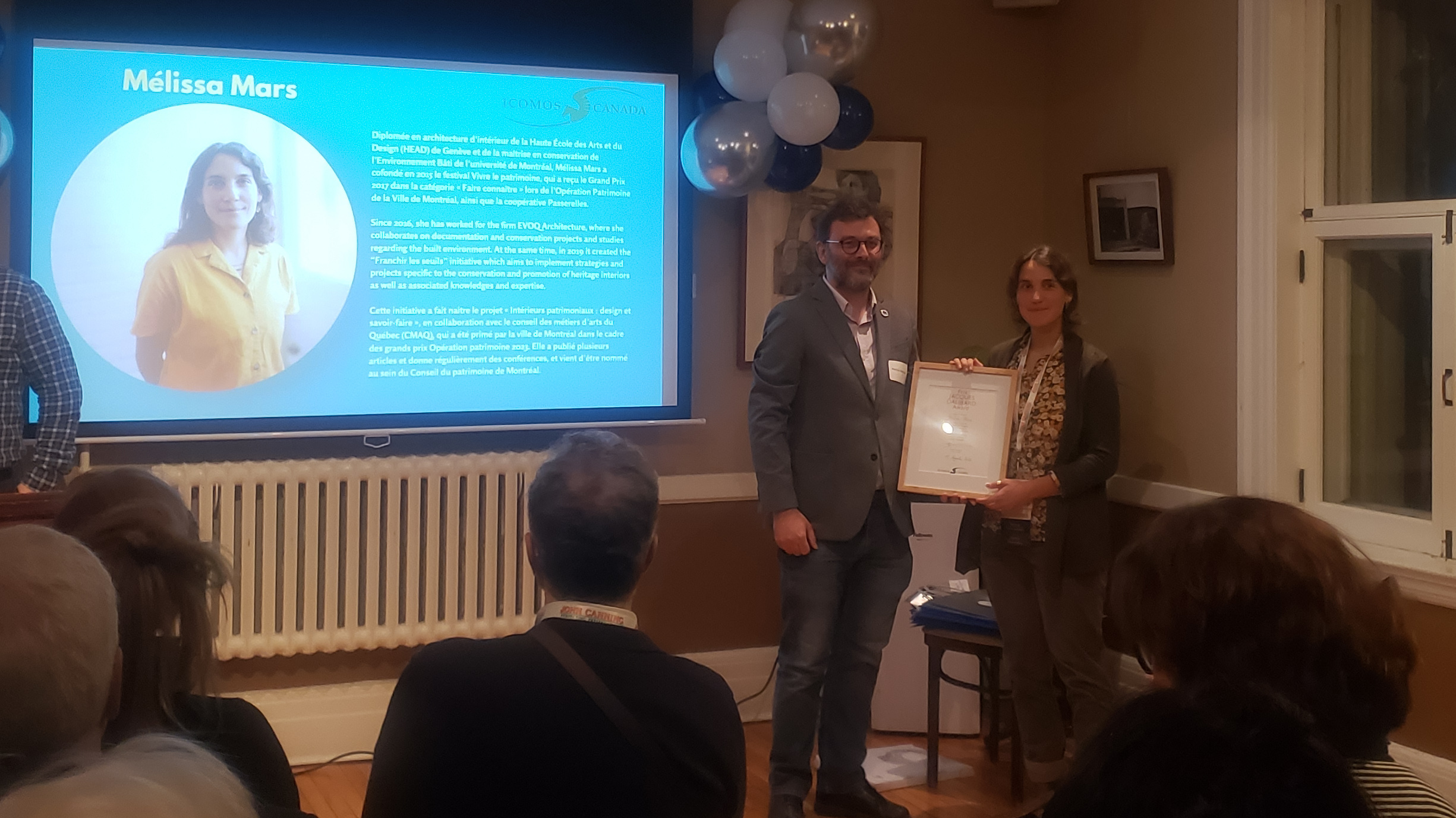 Finally, congratulations to the CAHP award-winning teams (the Maisonneuve Library, the Winnipeg Exchange District Heritage Sustainability Report, the City of Gatineau Modern Heritage Inventory, and Janet Li for her master's project entitled “Facadist Toronto: Heritage at Face Value”), who were honoured at the awards ceremony held as part of the joint conference. Congratulations also to Mélissa Mars, who received the Jacques Dalibard Award from ICOMOS Canada.