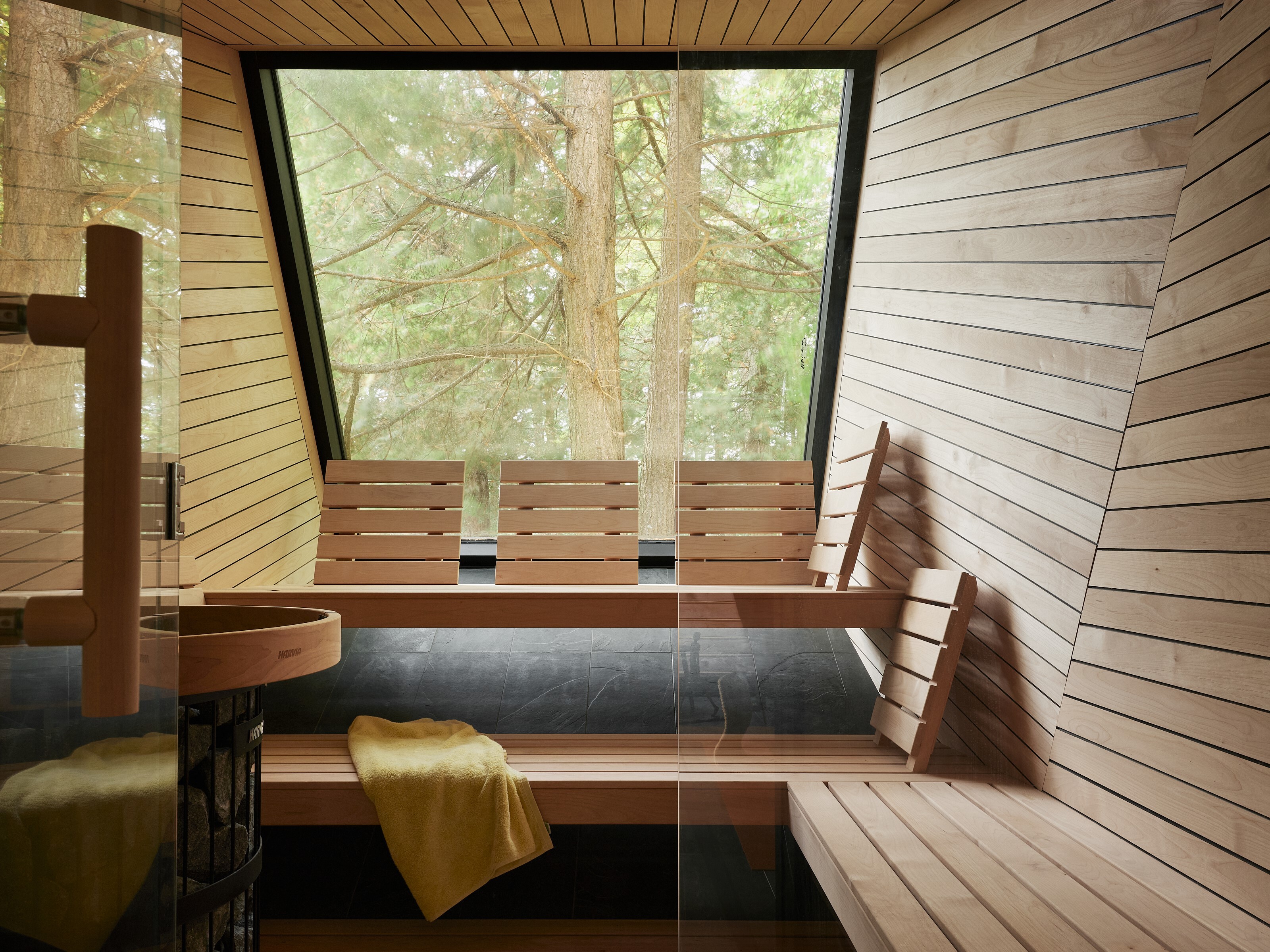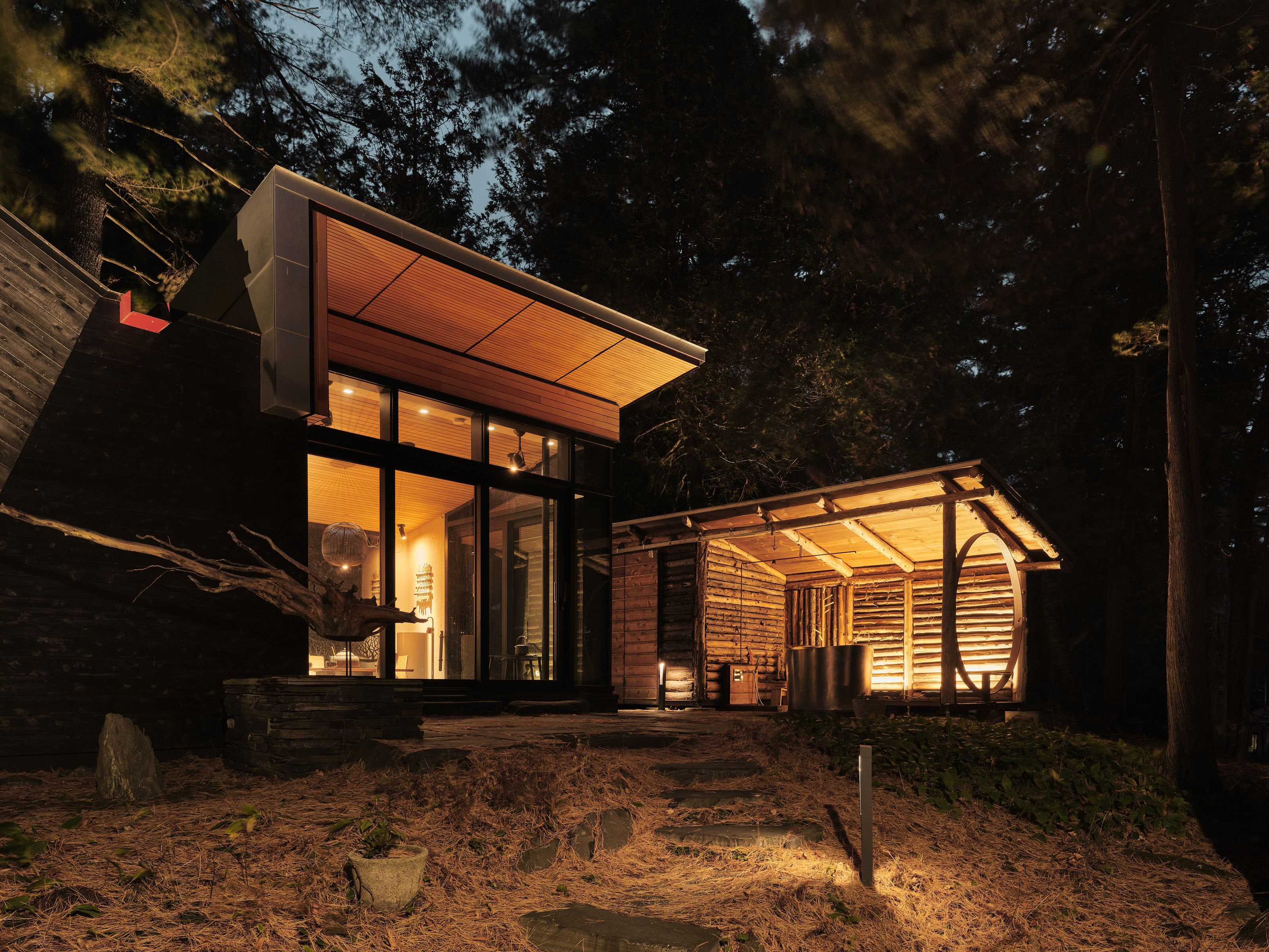 The latest addition to La Grande Ourse hamlet, nestled on the picturesque shores of Lake Memphremagog, elegantly bridges tradition and modernity. This project has given new life to an existing log structure while enriching it with a contemporary reinterpretation of iconic Japanese elements: a Chashitsu tea house, an outdoor Ofuro bath, and a seamlessly integrated sauna.