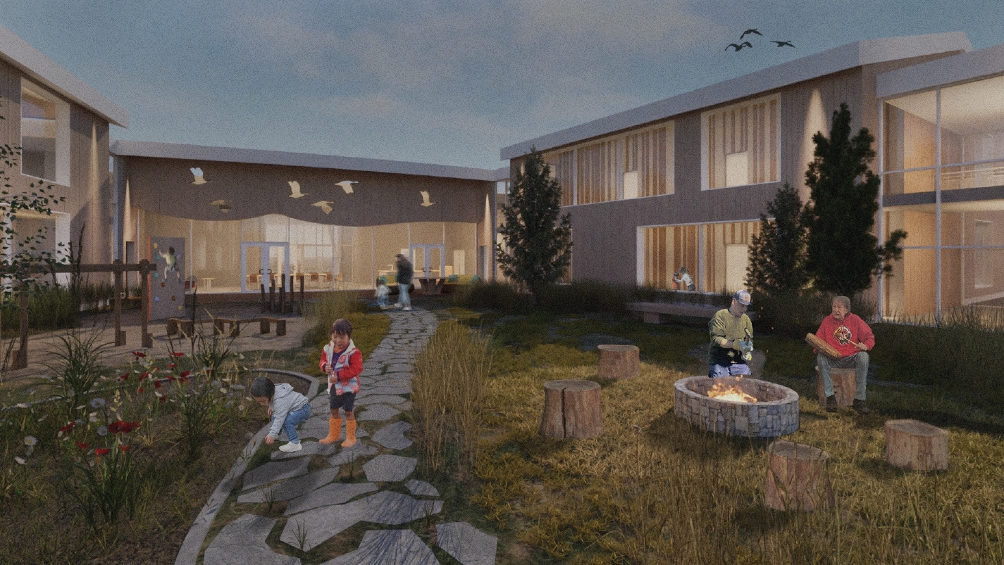 At the heart of the studio: the design of a multi-unit housing project to support a “post-majority” program for young people in the community aged 18 to 26. Many of these youth transition from child and family services at age 17 and need a safe, supportive, and culturally grounded place during their journey toward adulthood.