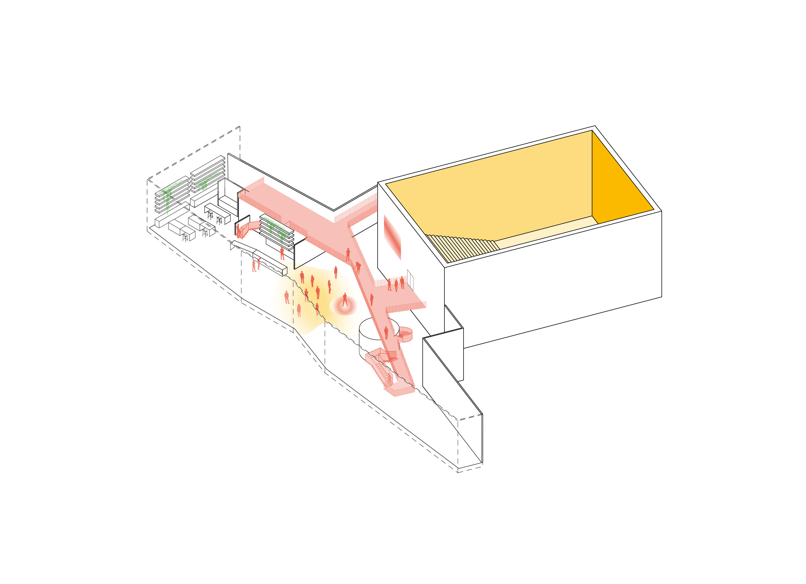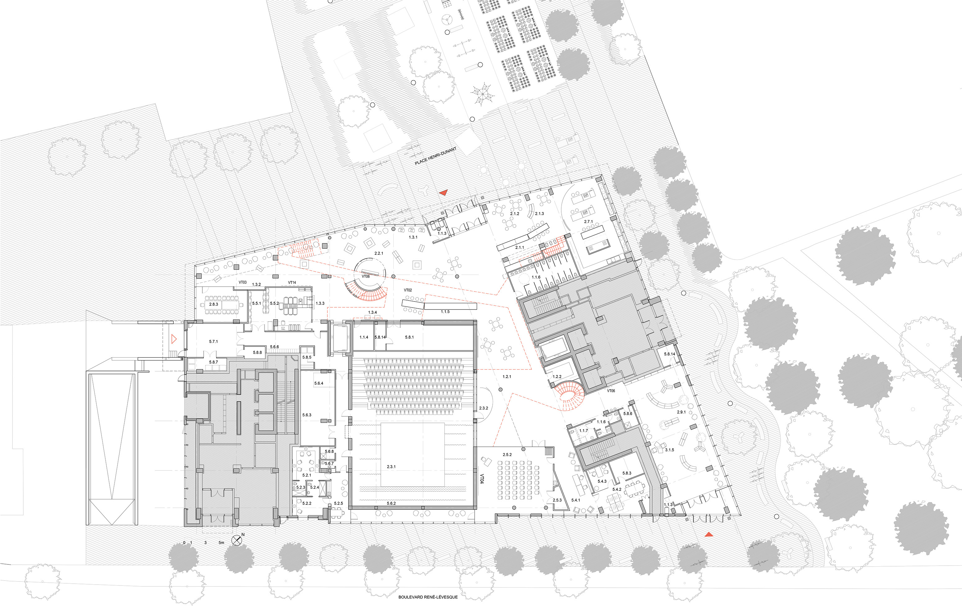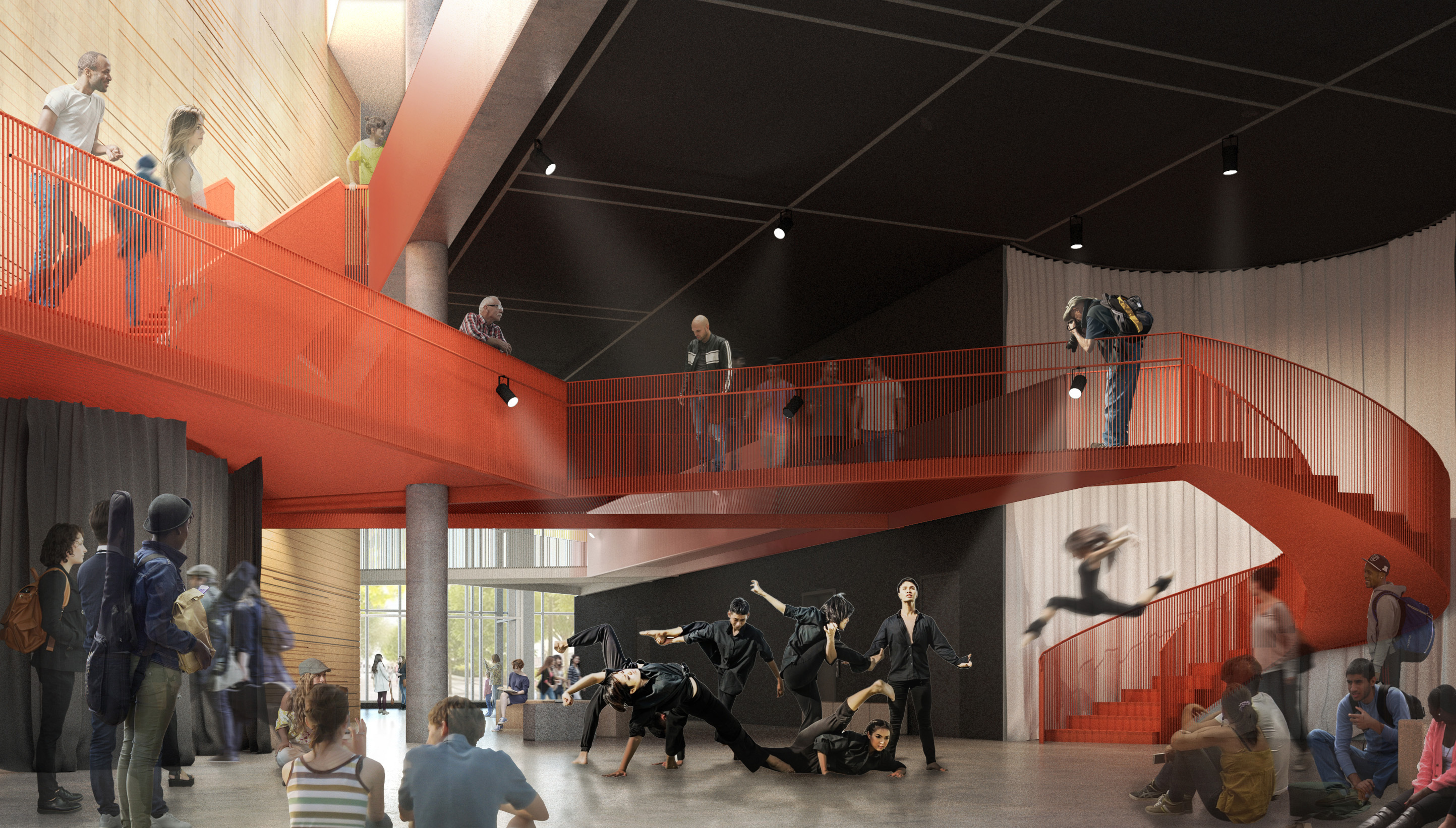 Several areas can be transformed to accommodate spontaneous or planned events. The balcony of the auditorium opens onto the main hall, accentuating its event-oriented character. Technical floors and grids in the ceiling of the hall and agora ensure maximum flexibility in its potential for appropriation.