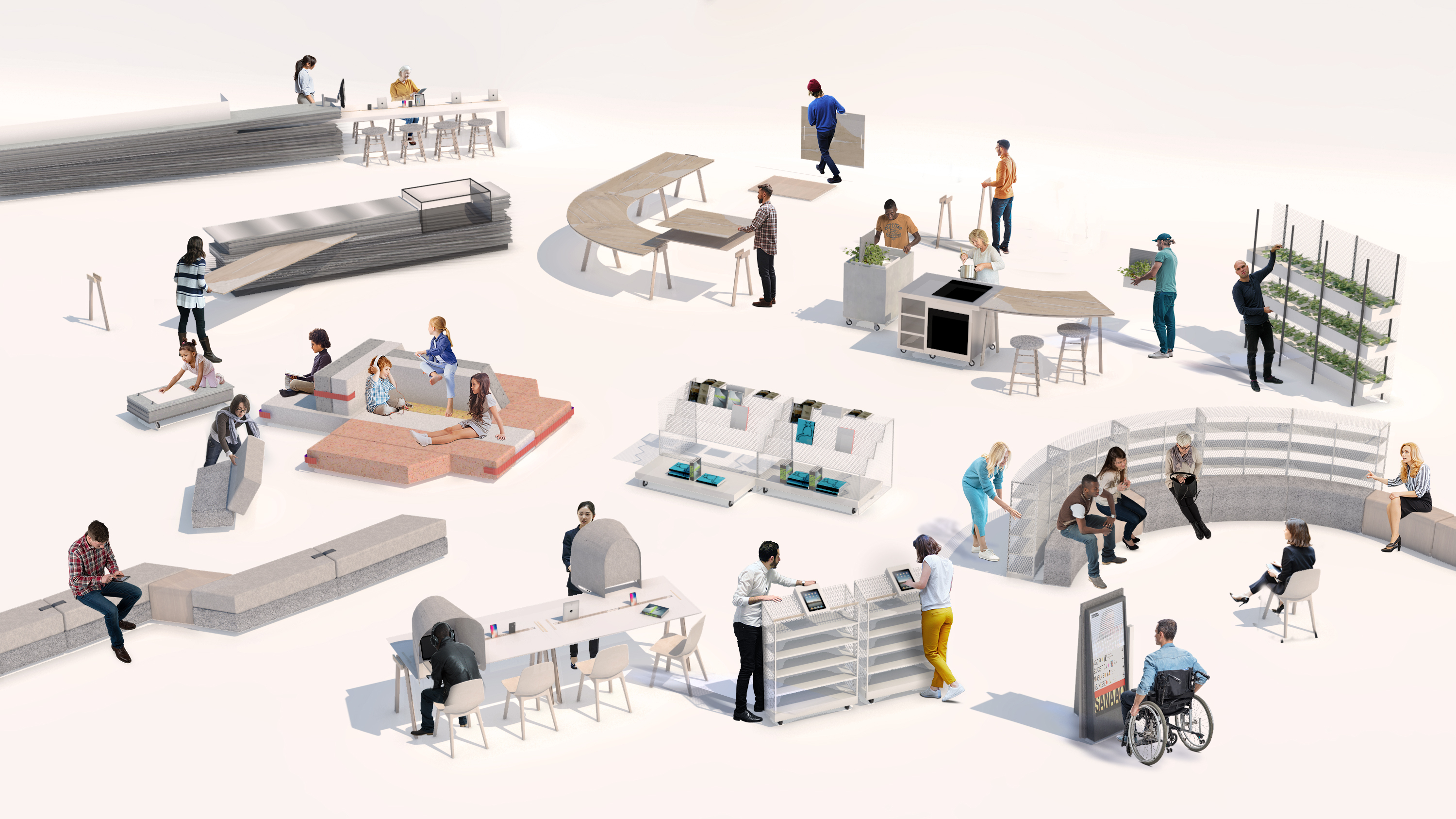 The semi-transparent and colorful materiality of this walkway and its activators becomes a technological support for projectors, directional loudspeakers or other technological supports capable of sustaining an experience of movement and immersive places; places of discovery and concentration."