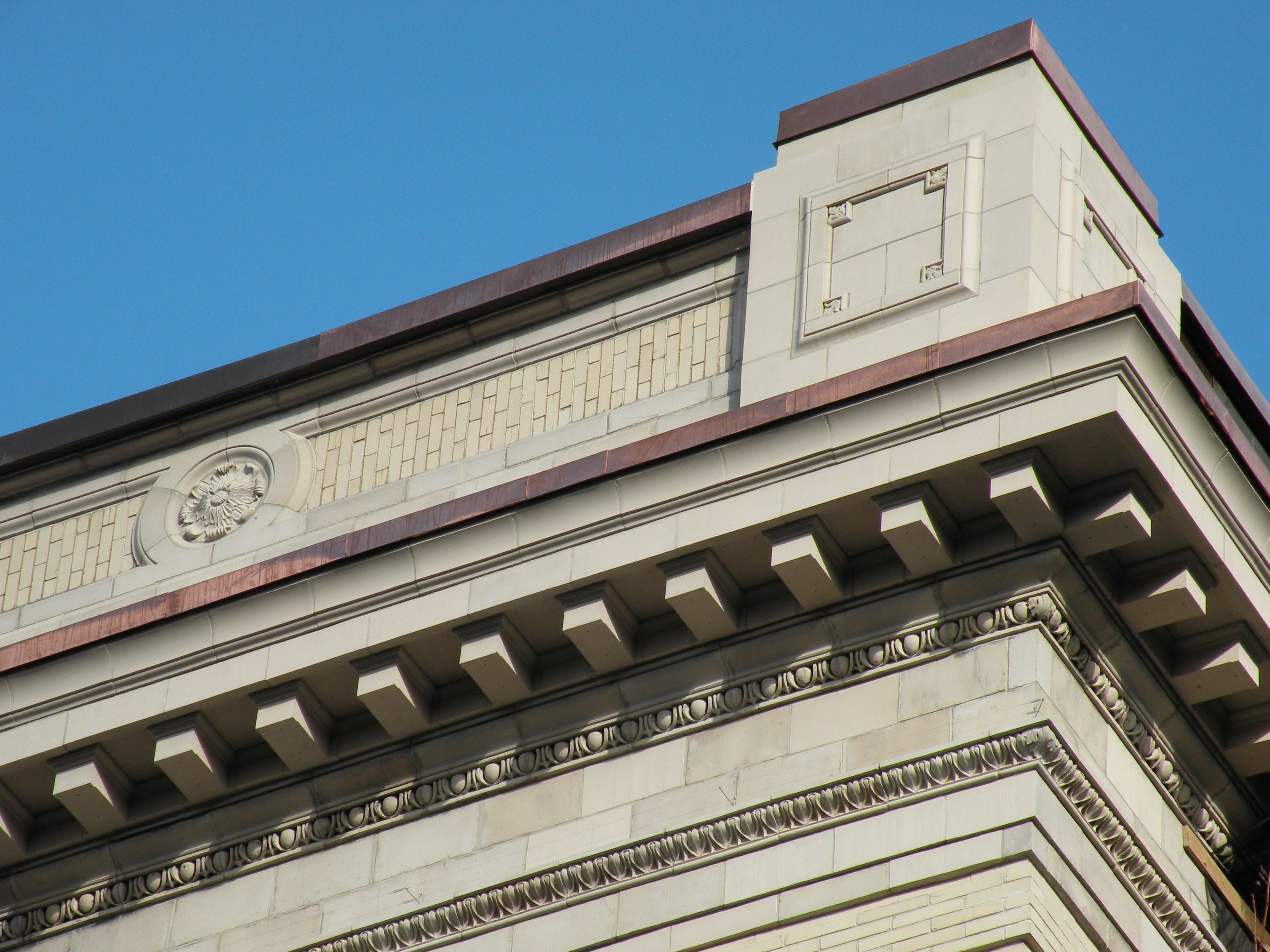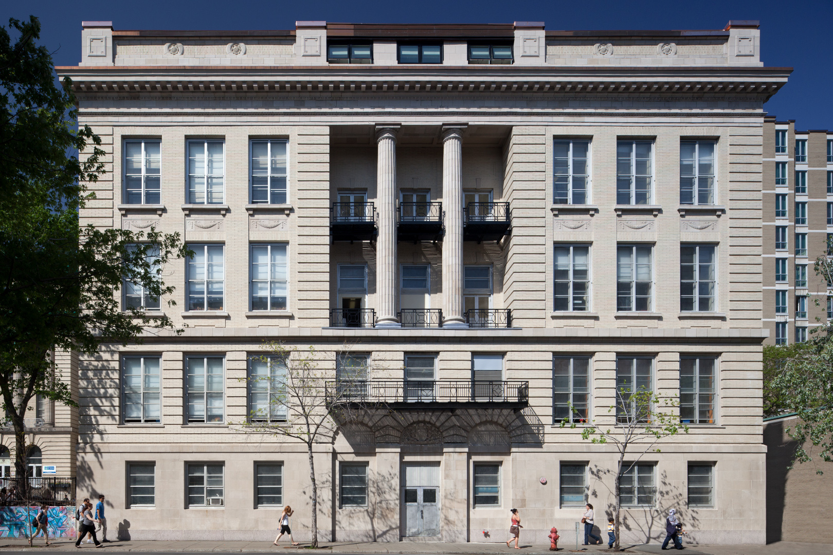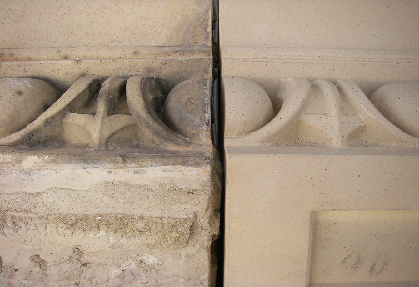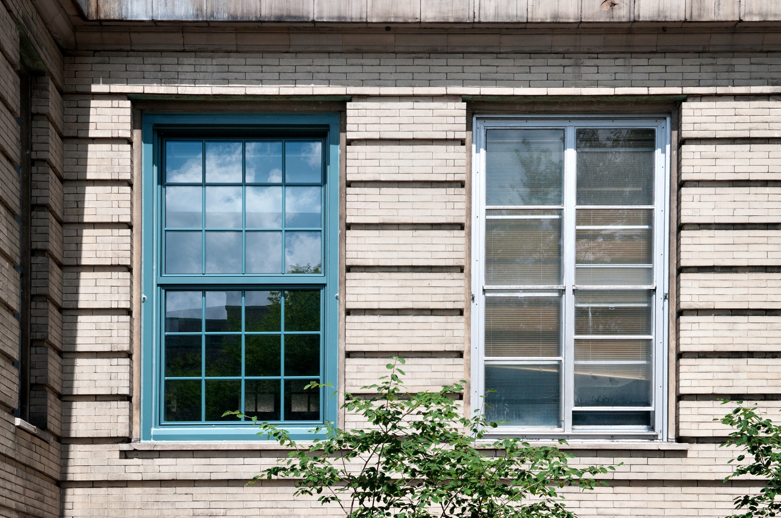 The exterior restoration addressed inherent construction flaws and decades of deferred maintenance. Missing terracotta pieces were recast, and repairs, along with general cleaning, restored the masonry's original lustre. The windows were chosen to replicate the original appearance while being operable and maintainable, approved by the Ministry of Cultural Affairs.