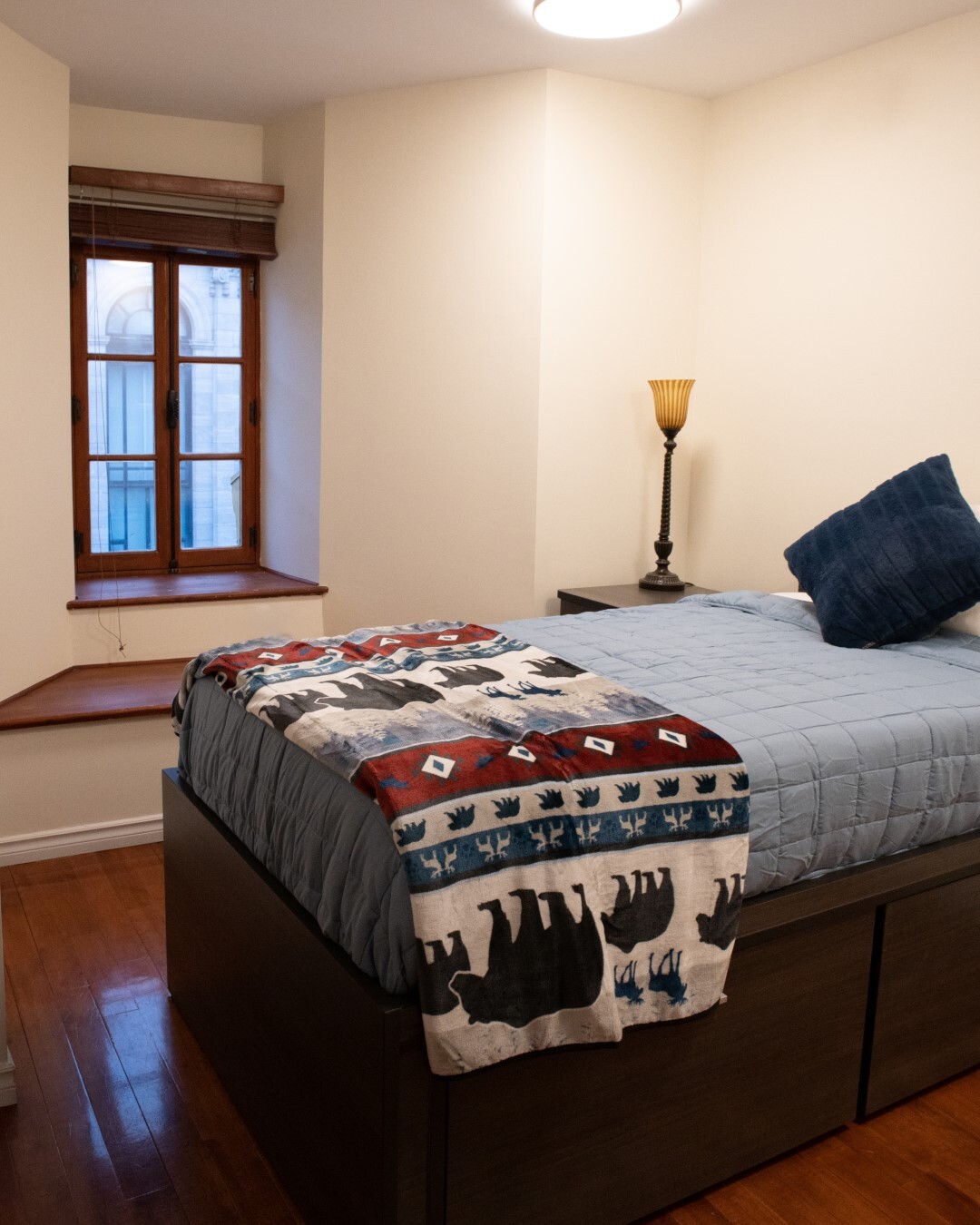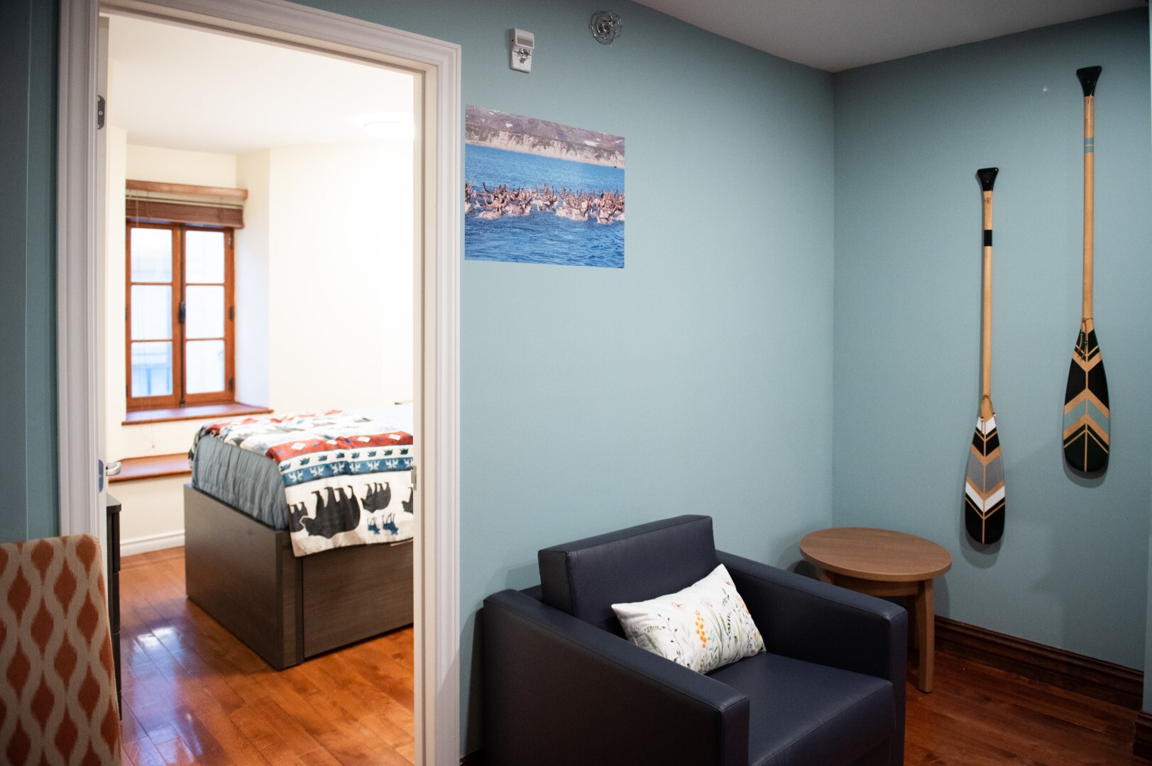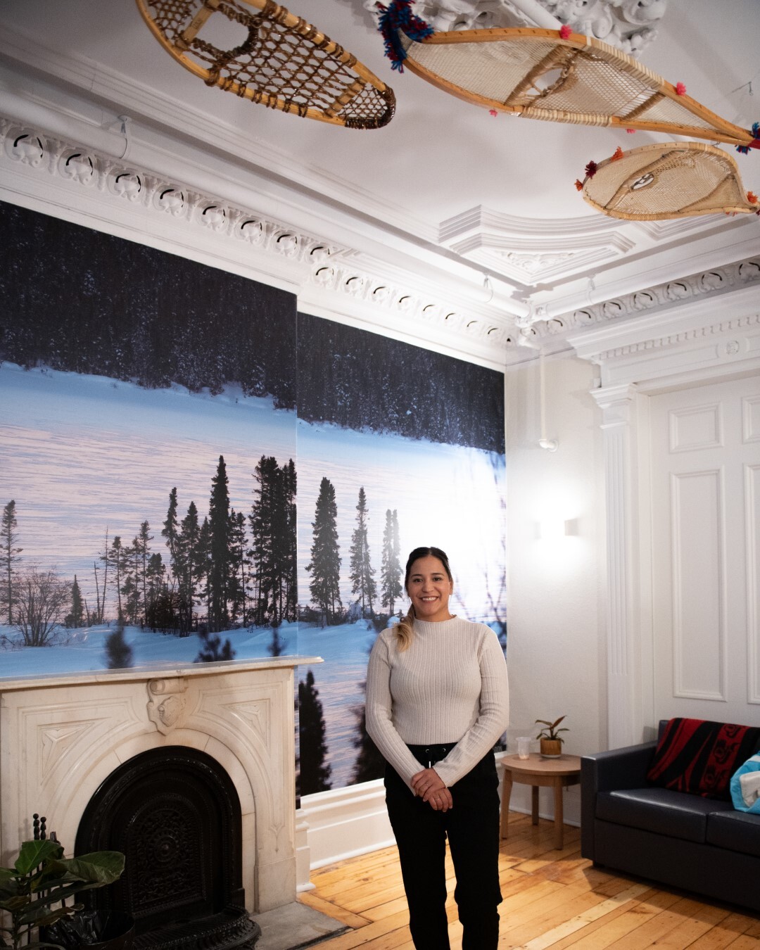 The renovation project for both buildings was carried out by 2Architecture. The EVOQ team, led by Julia Shuliau Hervieux, Innu from Pessamit, was responsible for the interior design. Inspired by the changing seasons, the decorative elements harmoniously connect the different nations and their shared traditions. The renovations enhance the existing building while fostering a sense of security and community. The integration of indigenous installations reinforces the appropriation of the space by its occupants.