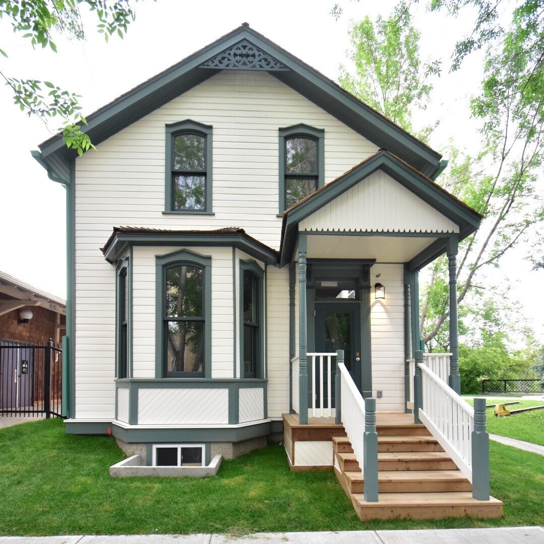 Rouleau House is among the oldest buildings in Calgary, constructed in 1885 by Edwin R. Rogers, business owner and Clerk of the Supreme Court of the North-West Territories. The house was named after its first owner, Dr. Édouard H. Rouleau (1887-1902), a prominent physician and active member of the Mission/Rouleauville community. Like many houses built during the period of rapid growth in late 19th-Century Western Canada, this house’s design was likely from a pattern book. Houses framed and clad in wood, such as Rouleau House, were very common in Early Settlement Calgary. It has been moved twice since construction. The house was saved from demolition in 2003 by the City of Calgary with community support.