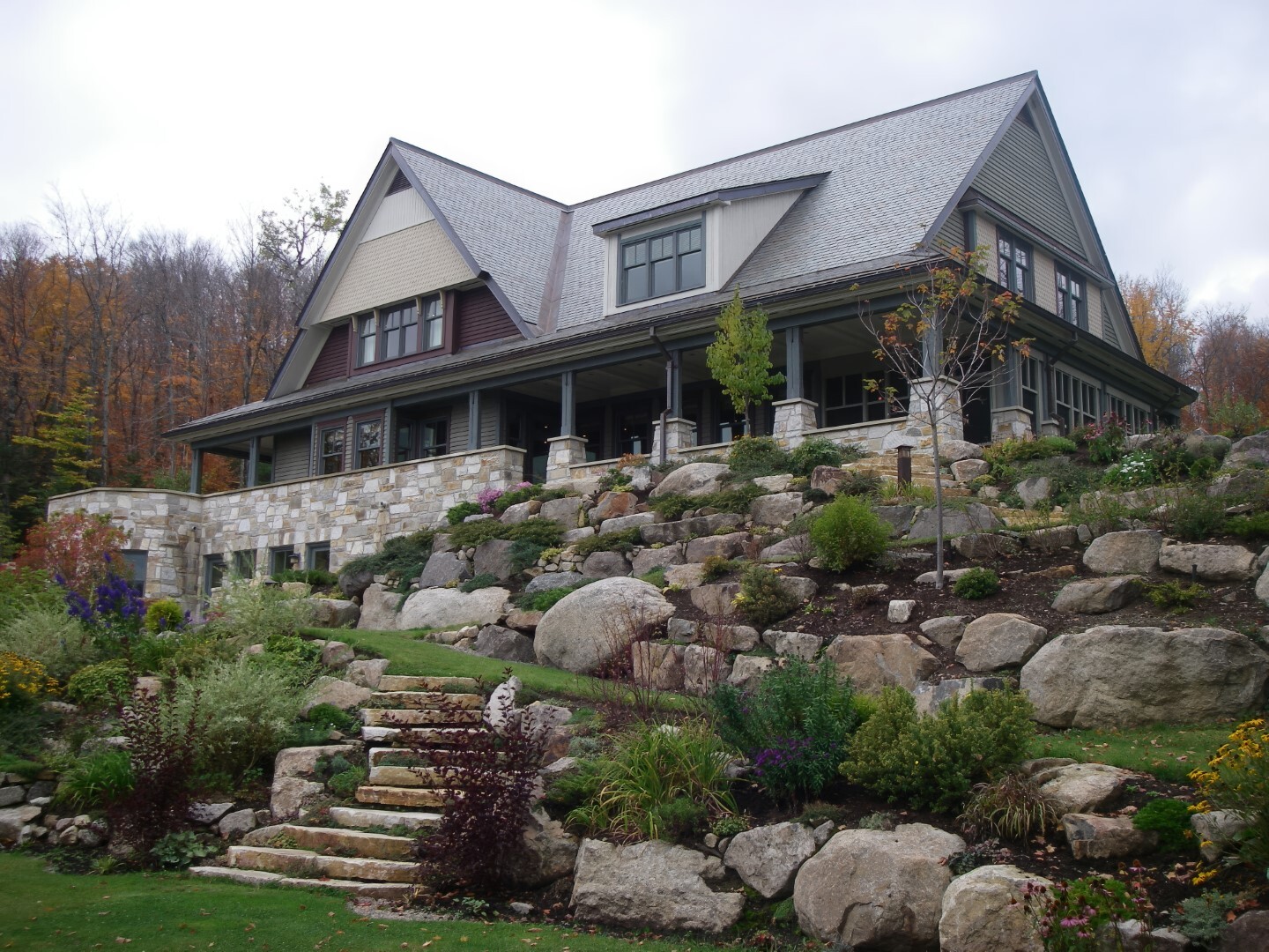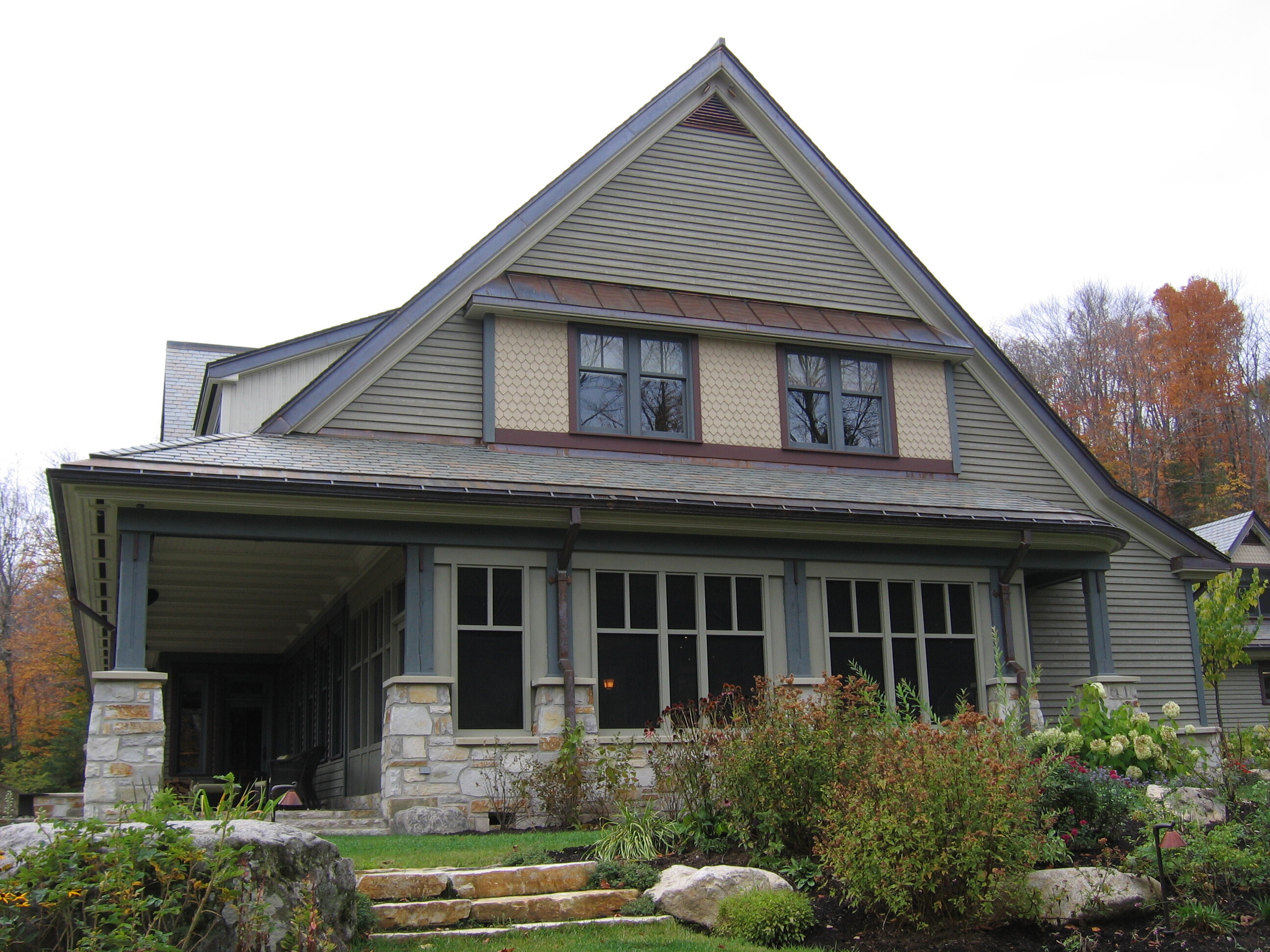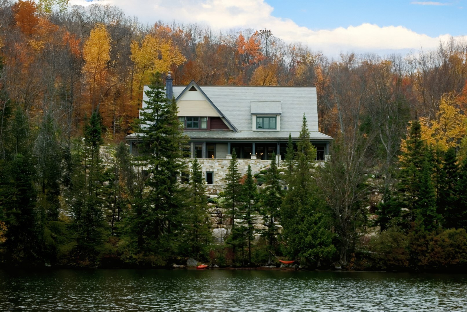 Thoughtfully articulated volumes break down the scale of this Arts & Crafts inspired residence, allowing it to settle naturally into its stunning Laurentian setting, where careful design and playful architectural details harmonize with the pristine lakeshore landscape.