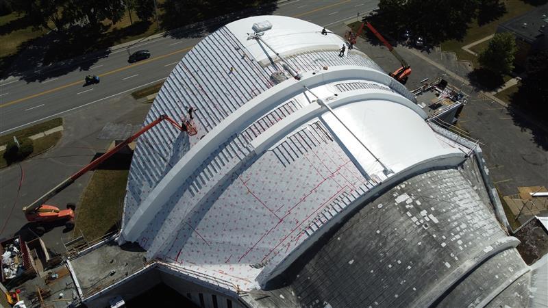 Informed by extensive pre-design studies and simulations, subtle modifications were made to the roof to replace its obsolete composition and improve snow and ice management at the base of its curved vaults. The introduction of a PVC membrane and a concealed glycol ice melting system enabled the project objectives to be met, while preserving the building’s heritage character-defining features.