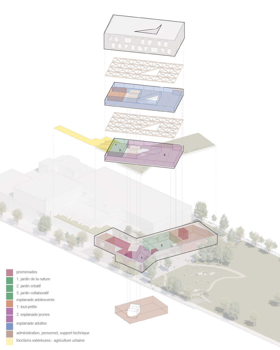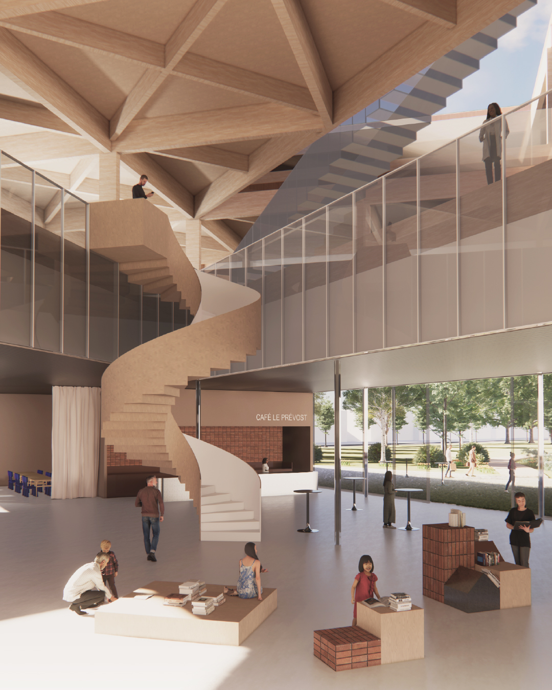 Bien que notre proposition pour la Biblio-jardin Caroline-Dawson et le Parc Le Prévost n’ait pas été retenue, nous demeurons extrêmement fiers du travail accompli et de la réflexion collective menée autour de ce projet inspirant.