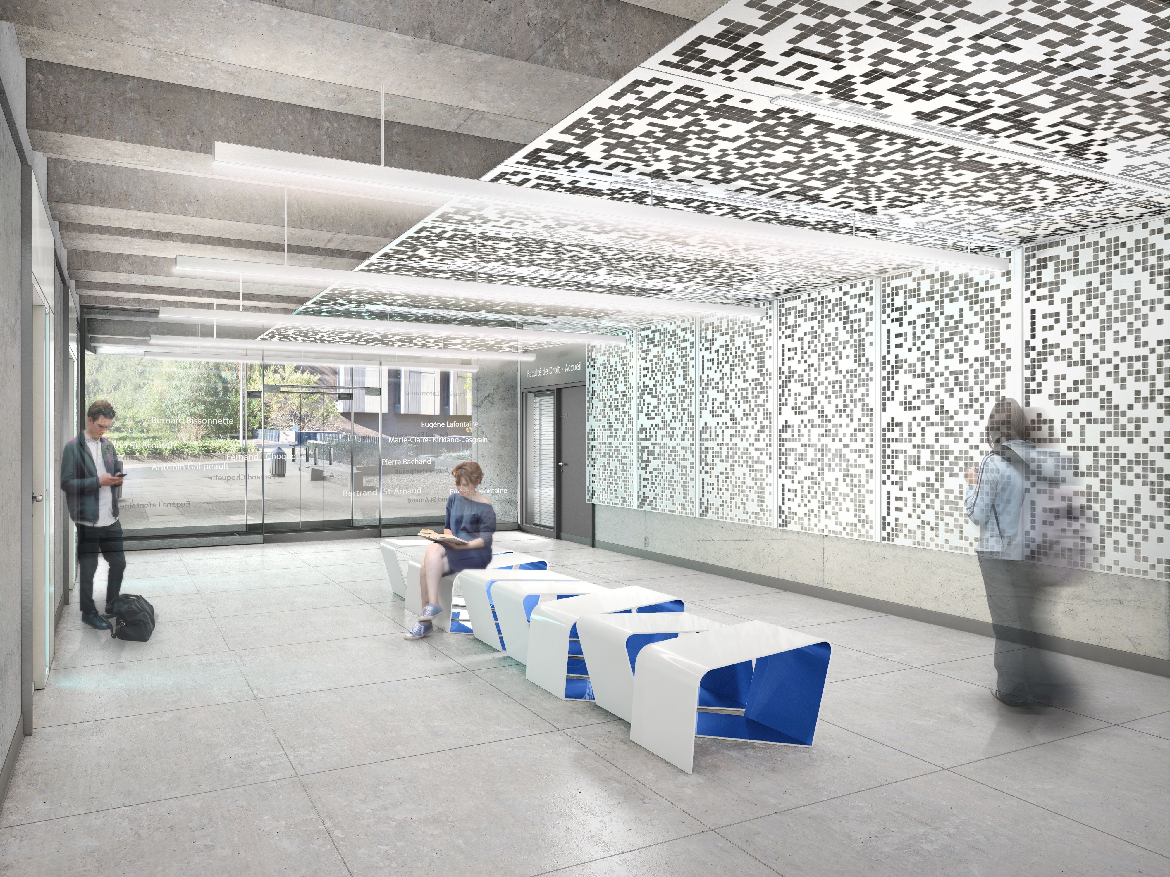 La mise en forme des hommages et des artéfacts de la faculté a été réalisée par la graphiste Camille Campeau qui s’est jointe à l’équipe de réalisation qui comprenait : Denis Larivière ing. (DLECI – génie mécanique et électrique) , Omar Elbaradie ing (Chargé de projet de la Direction des Immeubles), et Michèle Vongphrachanh (Ralvec Construction), Mario Roy et Jean Désarménien (Département des Technologies de l’Information de l’UdeM).