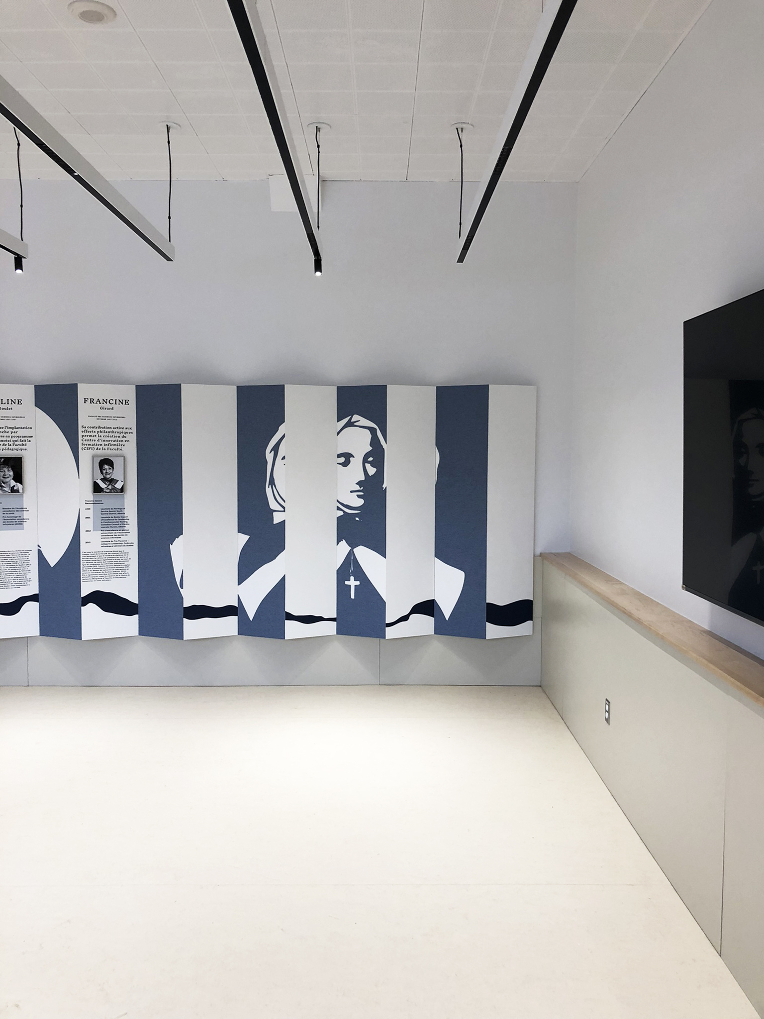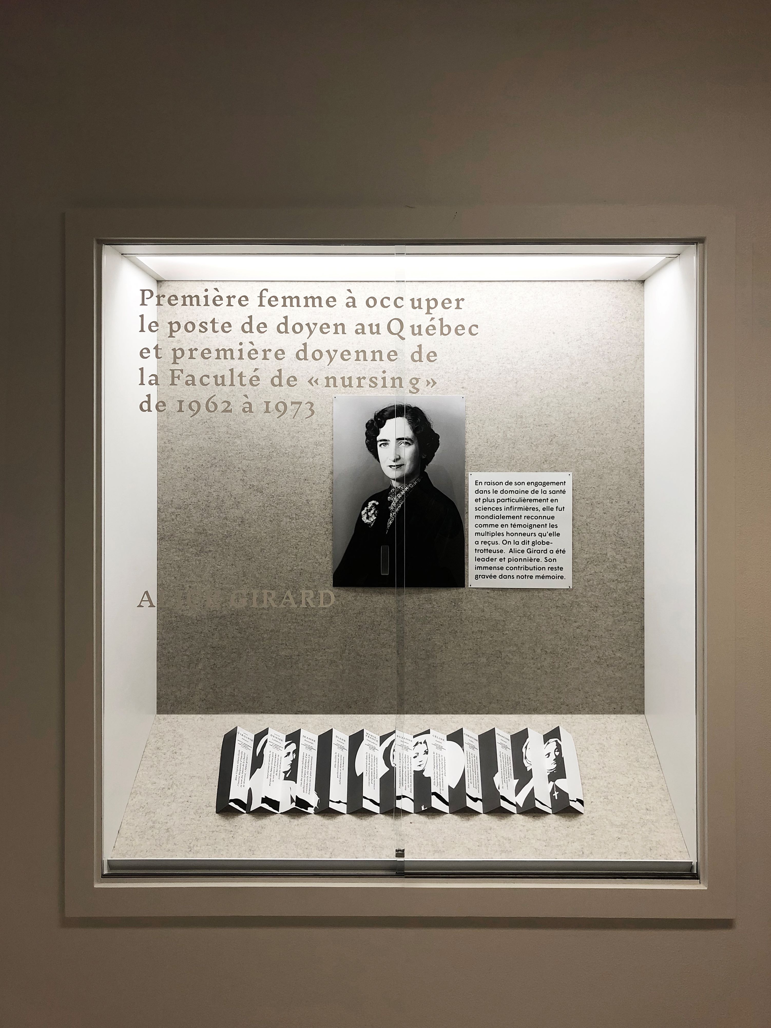 En plus du mur dédié à honorer les doyennes de la faculté, la salle comprend un hommage aux trois grandes bâtisseuses de la Ville de Montréal : Jeanne Mance, Marguerite D’Youville et Marguerite Bourgeoys.
