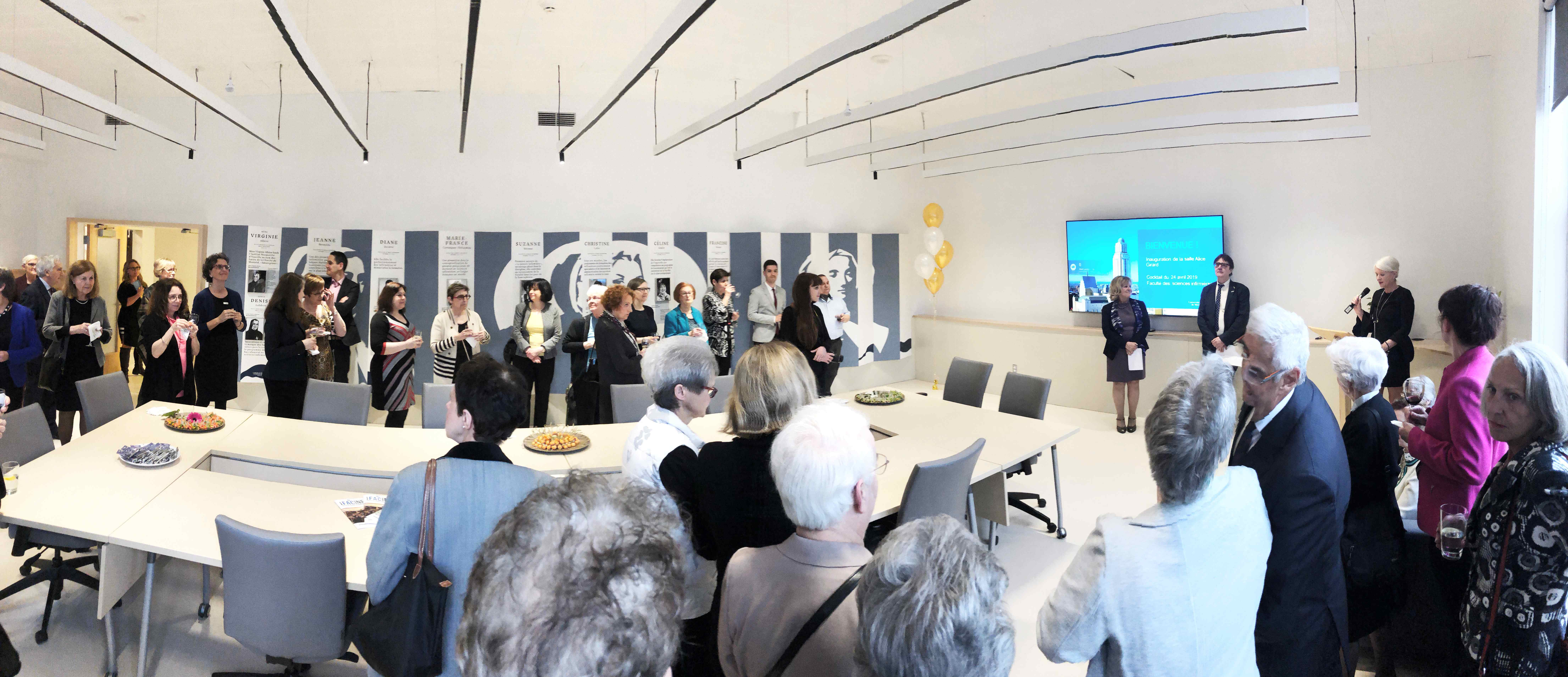 L’équipe d’EVOQ a travaillé avec la doyenne de la faculté des Sciences infirmières Mme Francine Ducharme ainsi qu’avec madame Sharon Harvie et madame Louise Bellerose au réaménagement de cette salle de conférence.