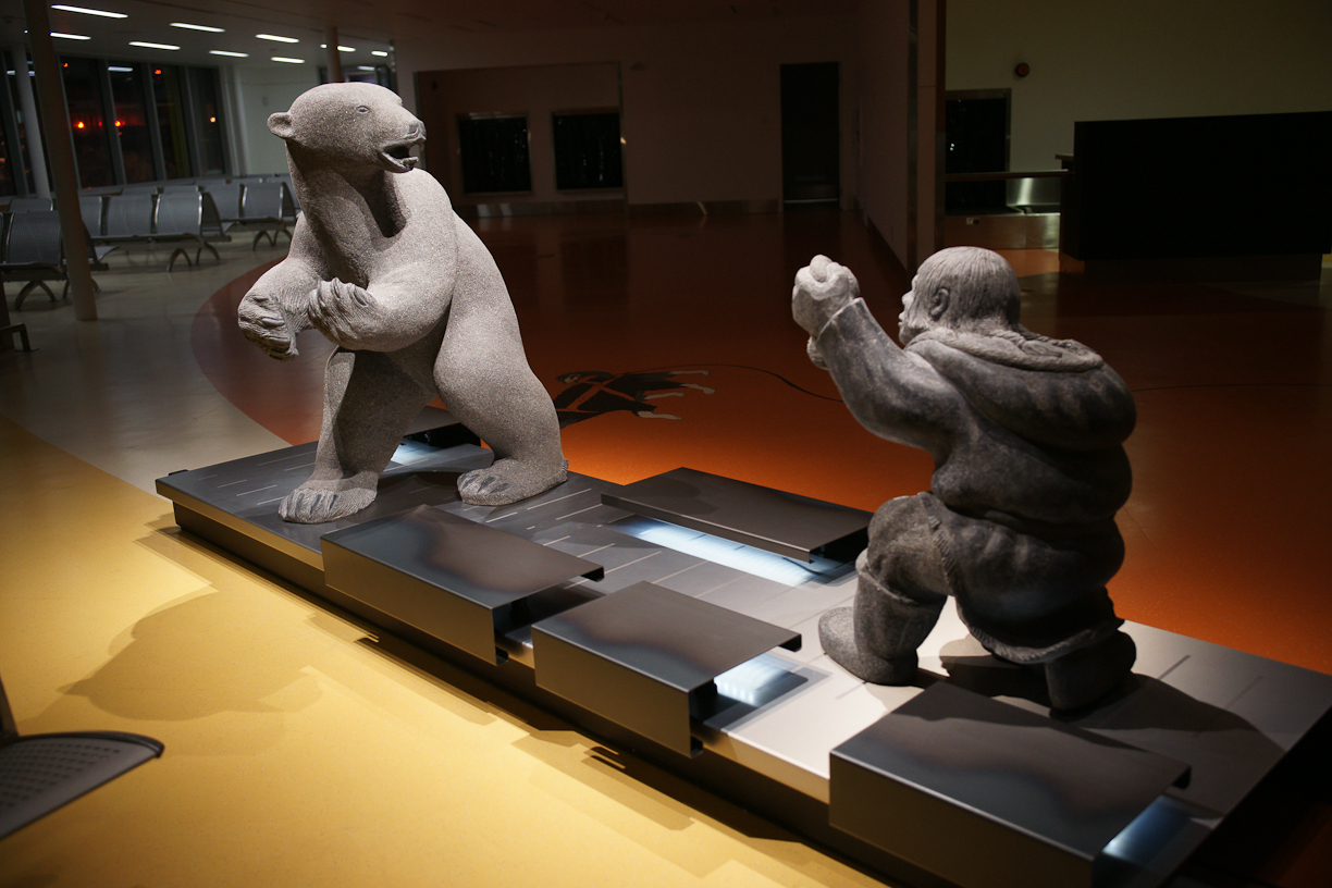 La communauté a choisi le qamotik, traîneau traditionnel inuit, comme trame narrative, autant pour la conception des espaces intérieurs que l’extérieur de l’édifice. L’espace public intègre la trame narrative grâce aux œuvres d’art (sculpture et dessins au plancher) de l’artiste local Peter Qumaluk Ittukalla. En plus de relever le défi technique que pose la construction au Nunavik, notre équipe a soigneusement planifié le phasage des travaux de manière à assurer le maintien des opérations de l’aéroport pendant toute la période de construction.
