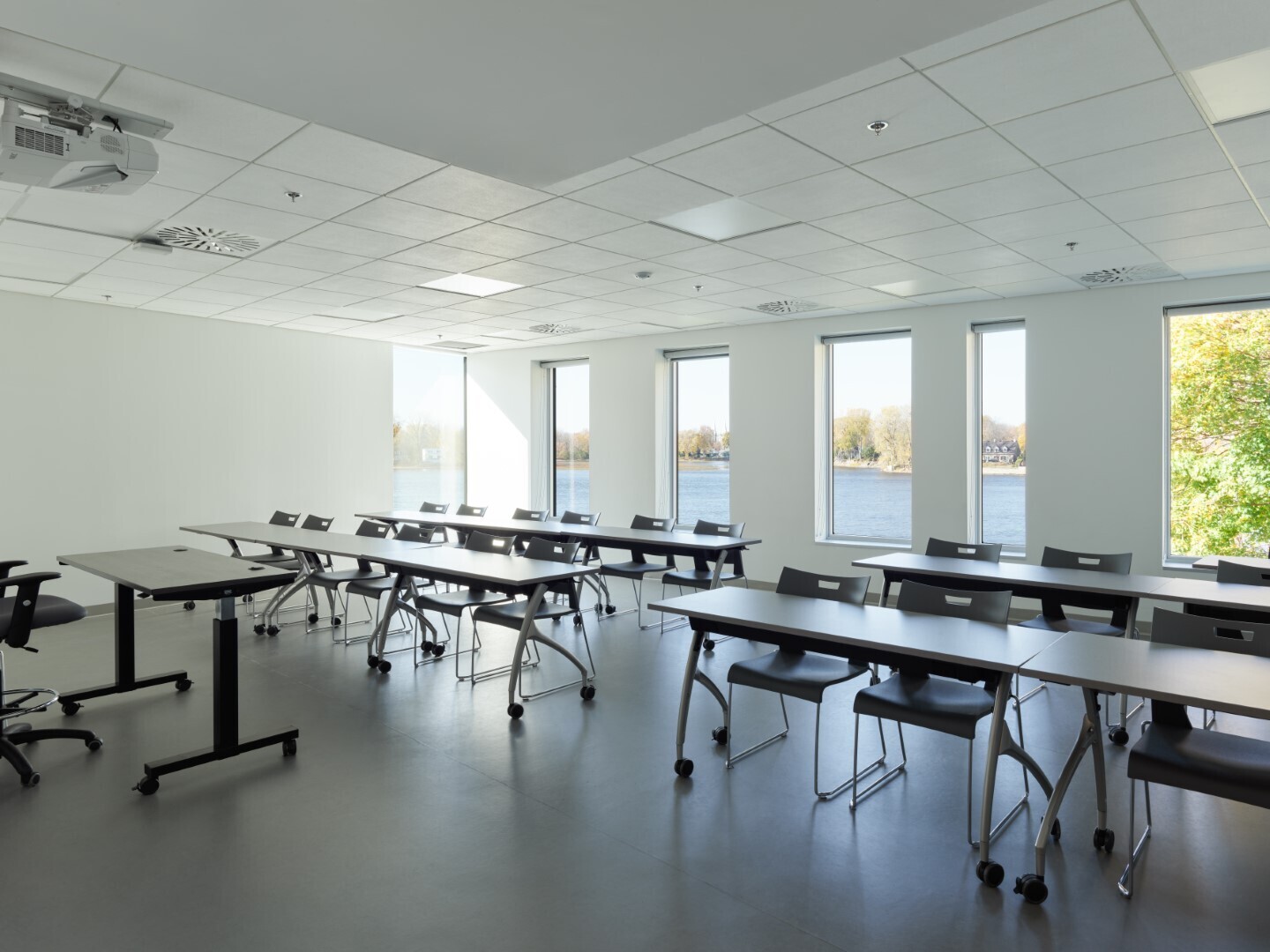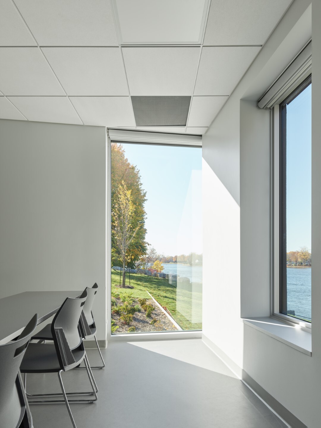 Établi à Sainte-Geneviève, bordé par la rivière des Prairies, le Cégep Gérald-Godin allie patrimoine et contemporain. Construit en 1999, le bâtiment combine un ancien noviciat à une section moderne. En 2019, EVOQ a été mandaté pour agrandir la façade nord et ajouter une mezzanine.