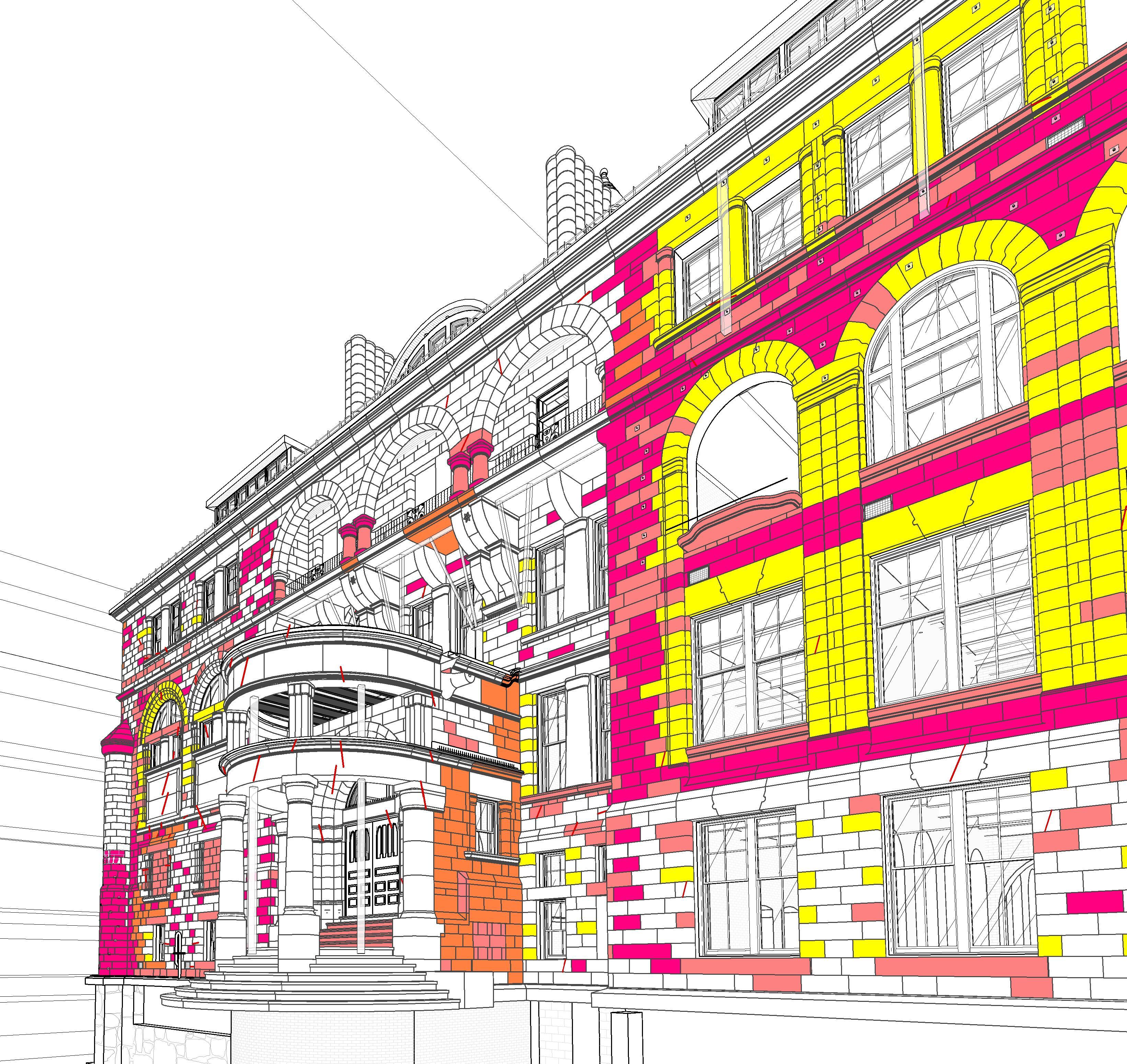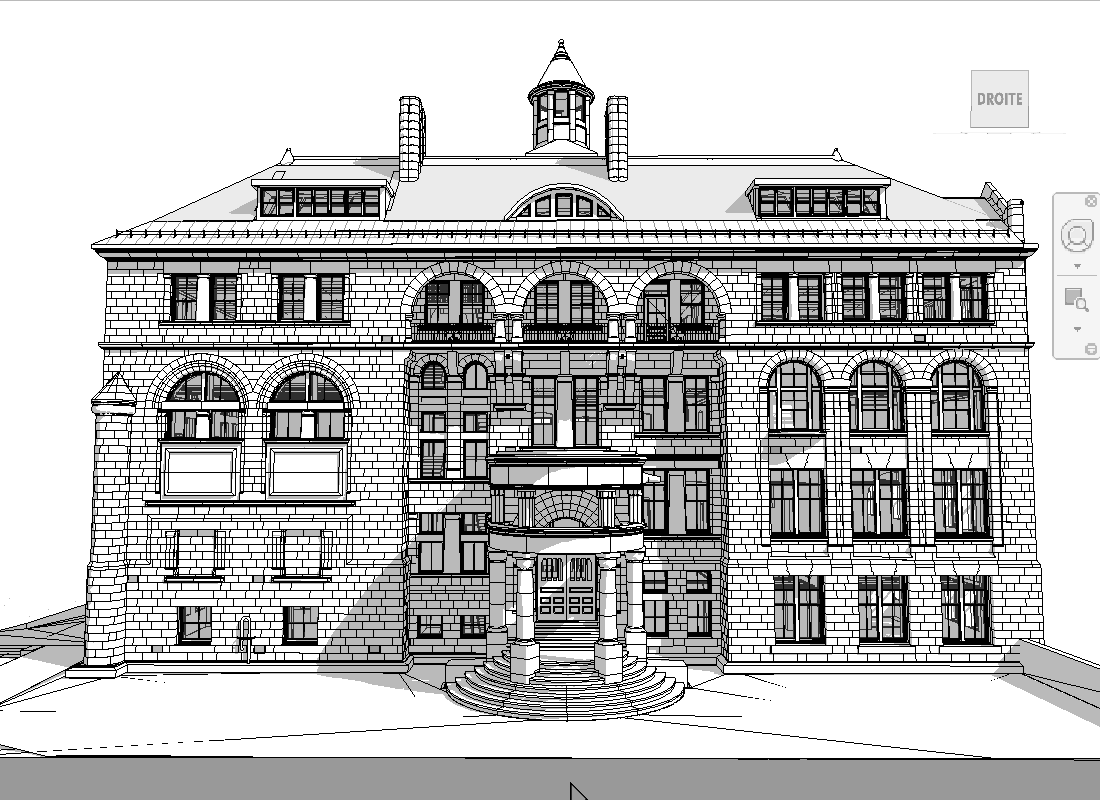 Le projet McGill Macdonald Stewart Library a été entièrement modélisé sous une approche pierre par pierre, pour permettre un maximum de données pouvant être rattachées aux éléments qui constitue le bâtiment. Ce clone numérique nous a permis de faire un suivi serré sur l’élaboration des plans préliminaires jusqu’au chantier. Cette approche BIM nous a permis de produire une maquette incroyable et d’avoir un recueil complet de données sur les interventions faites à la maçonnerie qui constitue une majorité de l’enveloppe et de la structure du bâtiment.