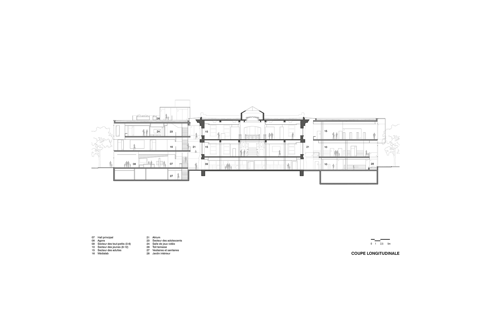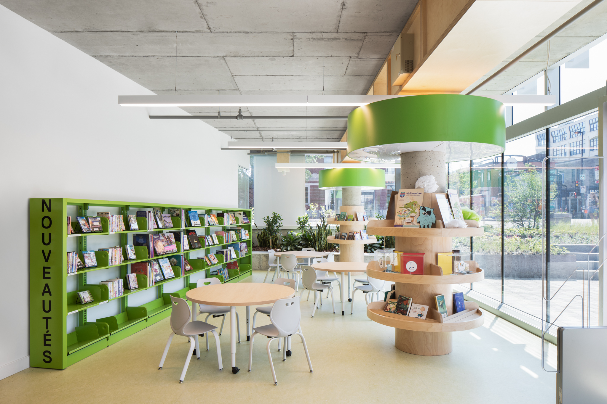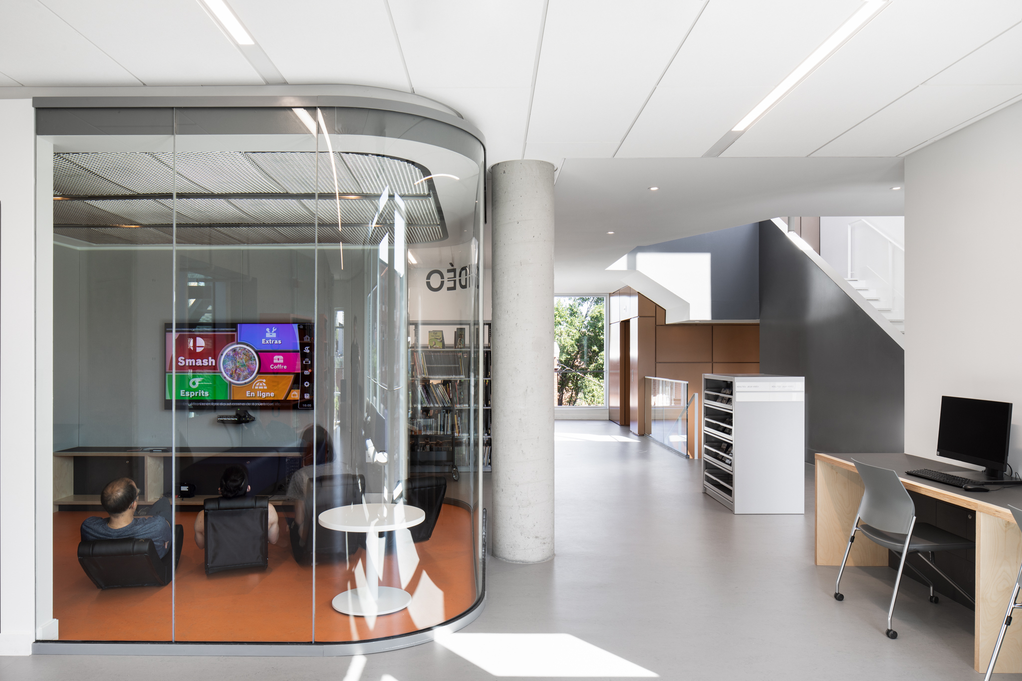 La nouvelle bibliothèque affirme son rôle social, communautaire et son ouverture à de multiples usages et pratiques liées au faire, à la création, à la culture du partage de connaissance ; un lieu de rencontre et de socialisation. L’architecture de la bibliothèque Maisonneuve constitue aujourd’hui un ensemble cohérent et dynamique, proposition d’une trajectoire renouvelée pour ce lieu essentiel, sis entre patrimoine et contemporanéité.