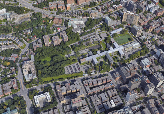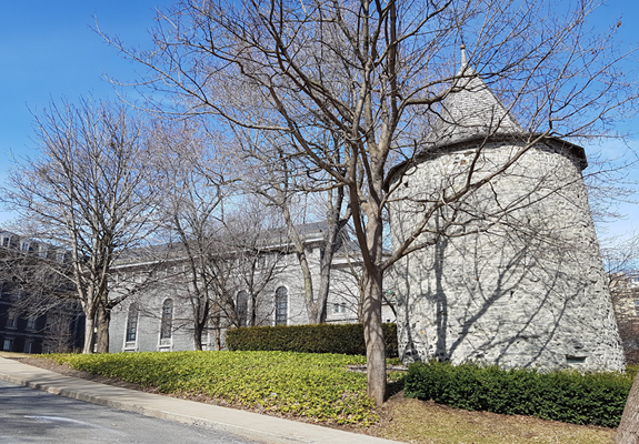 Le Campus du Fort de la Montagne constitue un ensemble patrimonial exceptionnel situé au pied du mont Royal, dont les origines remontent à 1675 avec l'établissement de la mission des Sulpiciens. Ce site historique abrite notamment les deux tours du fort de la Montagne, construites vers 1685, qui comptent parmi les plus anciennes structures de pierre de l'île de Montréal. Le lieu bénéficie de reconnaissances patrimoniales multiples : désignation comme lieu historique national du Canada en 1970 et classement des tours comme monument historique en 1974. Cette continuité historique remarquable, maintenue depuis l'établissement des Sulpiciens au milieu du XVIIe siècle, fait du campus un témoin privilégié de l'évolution de Montréal.