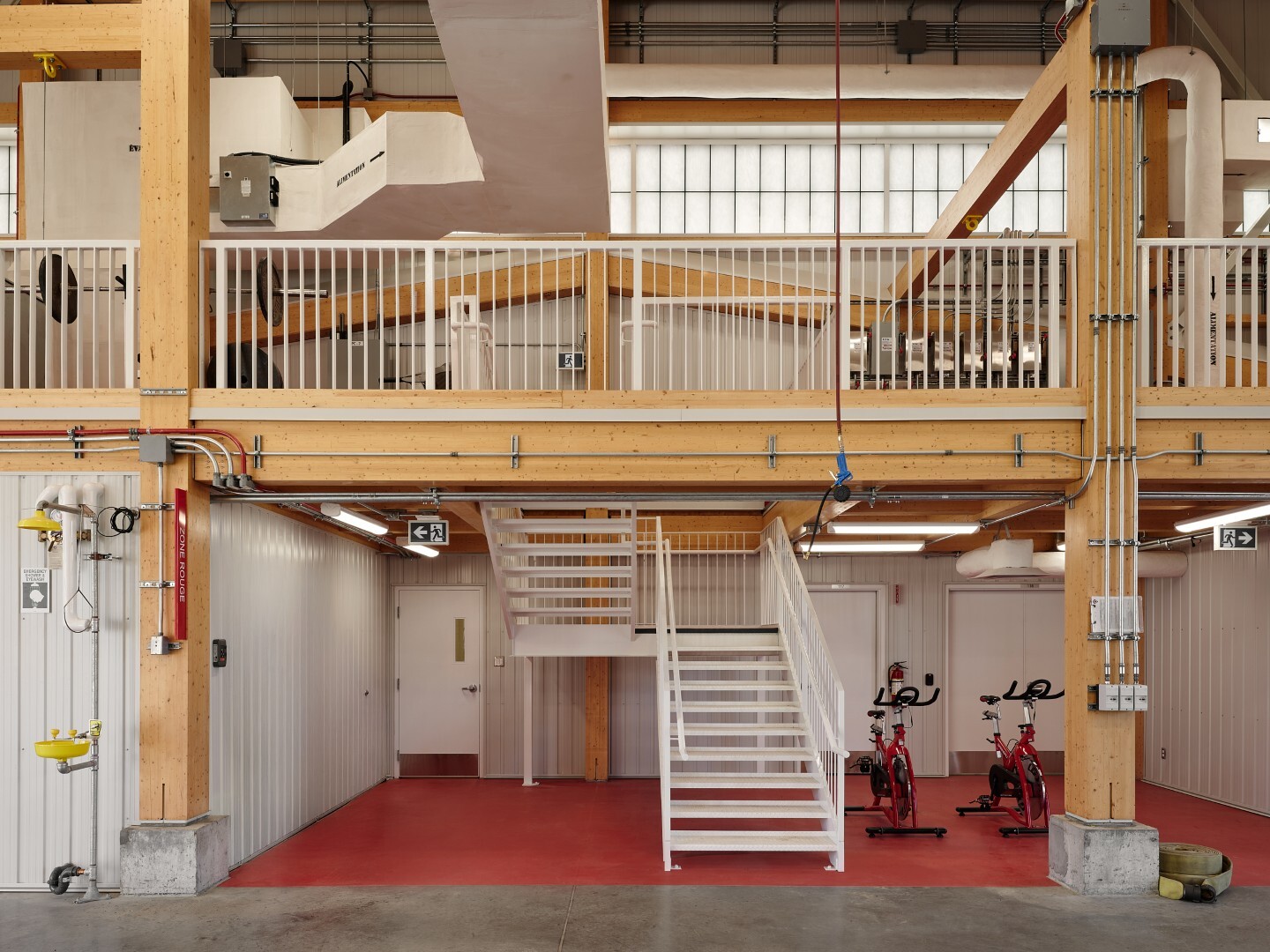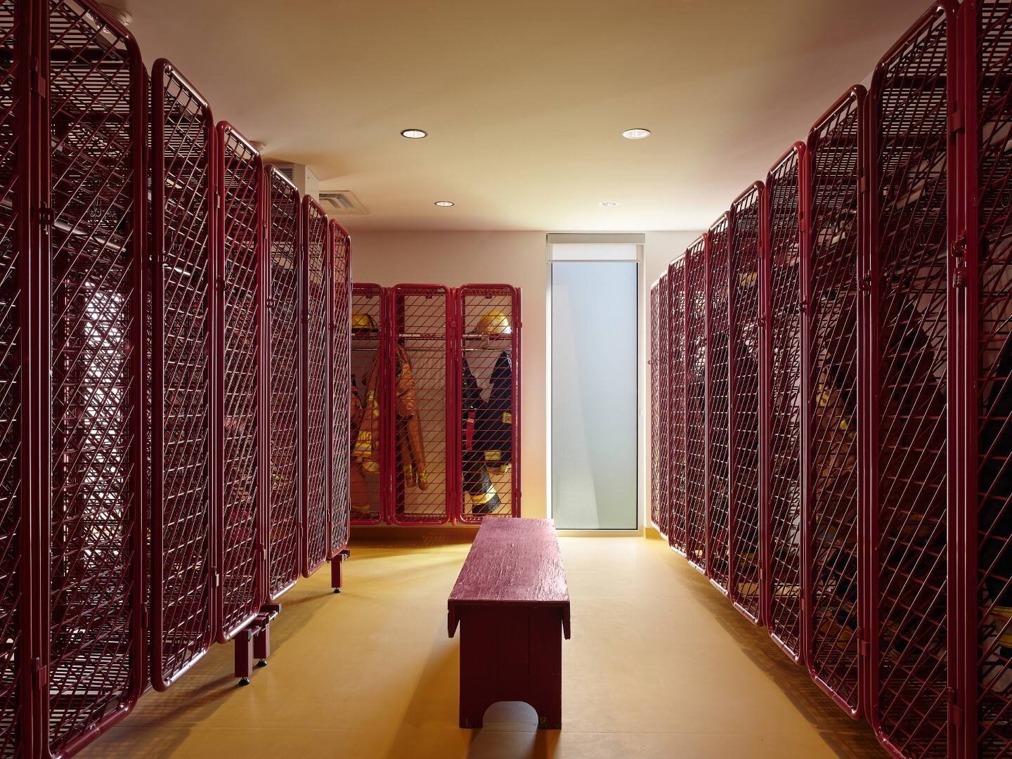 Deux volumes aux teintes contrastantes abritent les différents usages: le garage, avec ses trois baies de grande hauteur, permet un accès rapide aux véhicules d’intervention, tandis que les espaces administratifs s’articulent dans un volume allongé à échelle humaine. Les espaces techniques, inclus au volume du garage, comprennent des vestiaires, une salle de décontamination, une salle pour les équipements de protection, et une mezzanine dédiée à la pratique d’exercices de sauvetage.