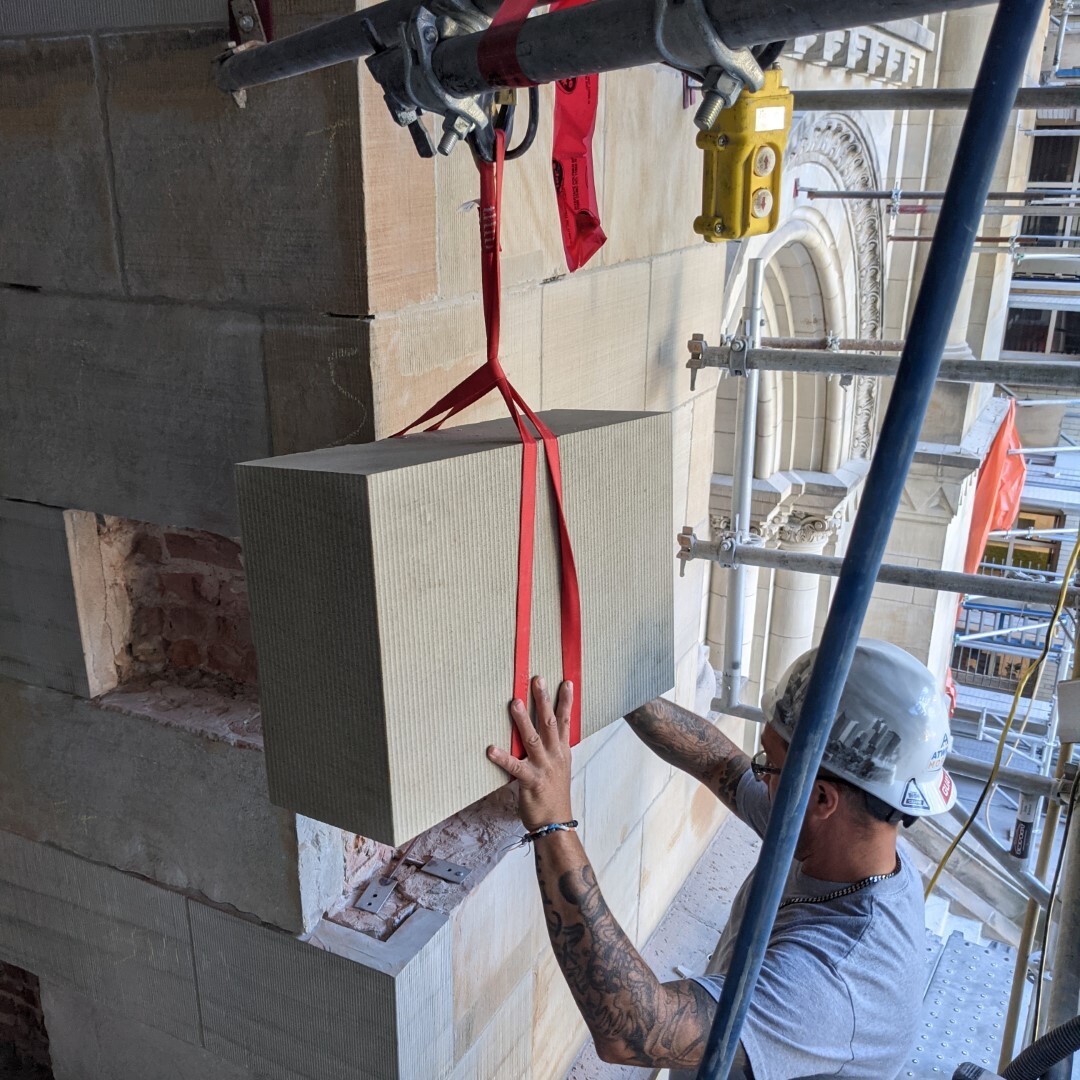 Implanté dans l’une des anciennes maisons-mère de la Congrégation de Notre-Dame, le Collège Dawson marque la rue Sherbrooke par sa monumentalité. L’édifice de style Beaux-Arts est inauguré en 1908 selon les plans des architectes Marchand et Haskell. L'entrée principale de l’édifice, en saillie, se distingue par son traitement formel et décoratif, marquée notamment d’un arc monumental, d’une rosace et d’un fronton triangulaire. EVOQ s’est vu confier le mandat de réhabiliter les façades de cette entrée monumentale, particulièrement ses composantes en maçonnerie de grès de l’Ohio et sa rosace en bois qui présentaient plusieurs signes de détériorations. Initié par des recherches, investigations et un rapport d'expertise permettant d’évaluer l'étendue des travaux à entreprendre, le mandat s’est poursuivi avec l’élaboration des plans et devis, la mise en œuvre d'un appel d'offres public et le suivi de chantier. Après 23 mois d’expertises et de travaux, l’entrée du Collège Dawson a retrouvé sa pérennité.