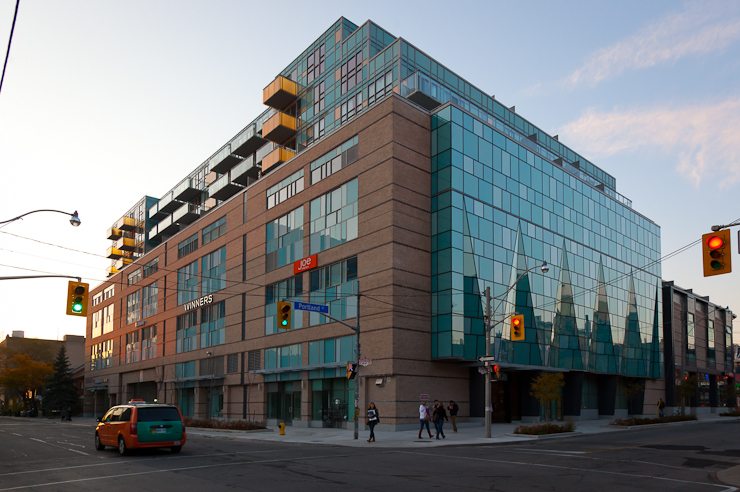 Situé dans le district de conservation du patrimoine de la rue Queen Ouest (DCP) au centre-ville de Toronto, le développement Queen et Portland comporte trois étages de base commerciale, un stationnement souterrain, et une tour de condominium de 5 étages.