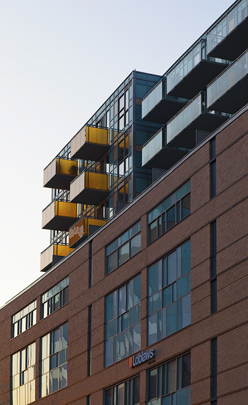 La conception à usage mixte était assujettie aux lignes directrices du plan de développement du district de conservation du patrimoine qui a été élaboré par EVOQ en collaboration avec la ville de Toronto. En raison de la participation du cabinet à l’élaboration du plan, EVOQ a été mandaté par le promoteur pour concevoir le complexe en conformité avec les lignes directrices du DCP et obtenir les approbations des autorités d’examen du patrimoine municipal.