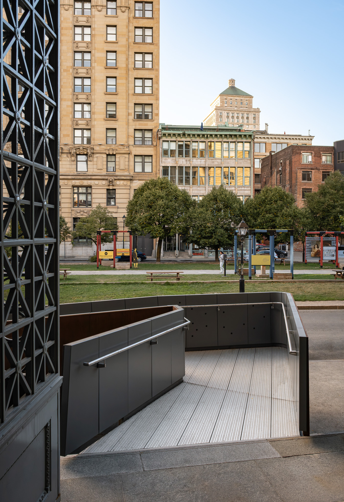 Le chantier des travaux de maçonnerie a débuté en mai 2019 et s’est terminé en février 2023. L’installation de la rampe d’accès universelle a été complétée en novembre 2023.