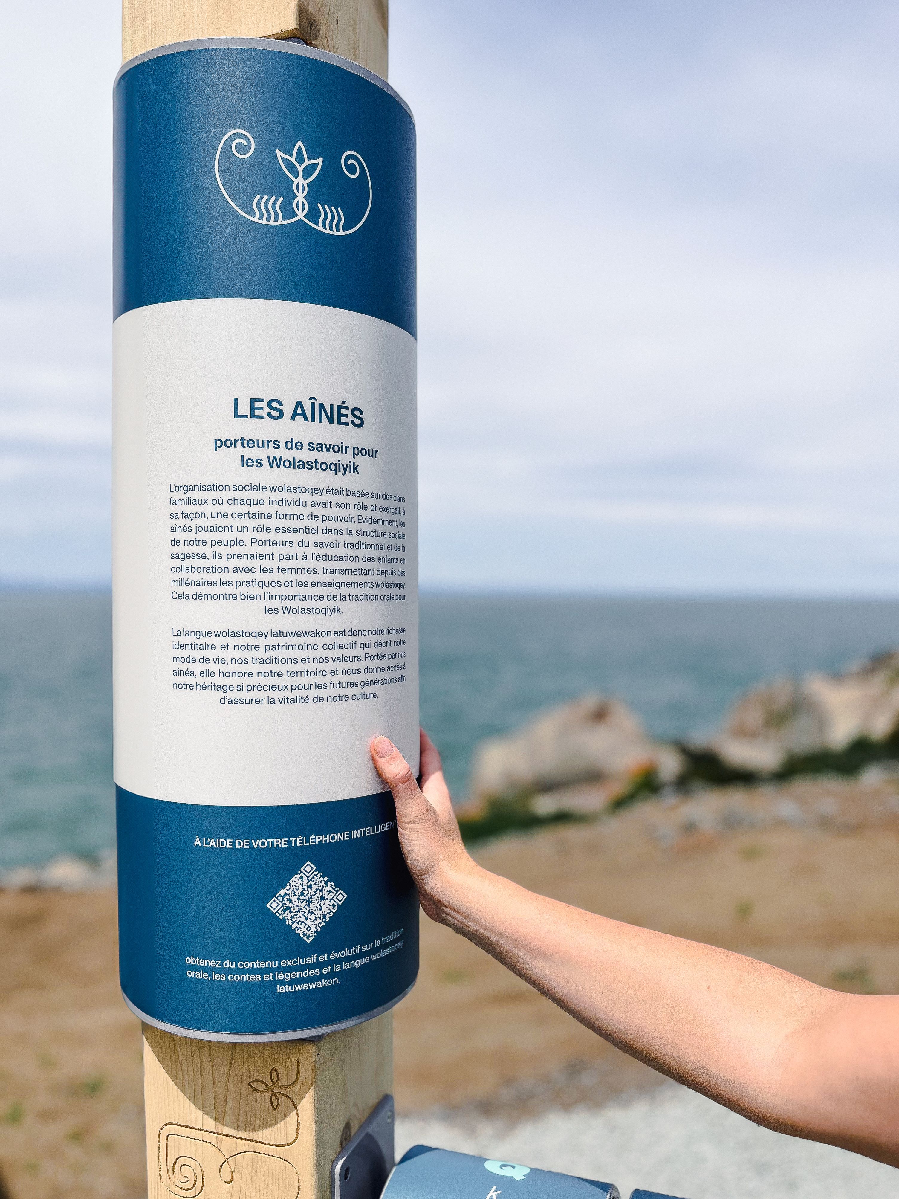 Dans le but de renforcer l’identité visuelle de la Première Nation Wolastoqiyik Wahsipekuk, l’équipe d’architecture de paysage, en collaboration avec Superwise, a élaboré et installé huit panneaux d’interprétation culturelle sur le parcours de découverte Putep’t-awt de 2 km qui permet d’observer des bélugas sur le fleuve Saint-Laurent. Ces panneaux orientent les visiteurs tout en mettant en valeur les éléments identitaires et les caractéristiques uniques du territoire.