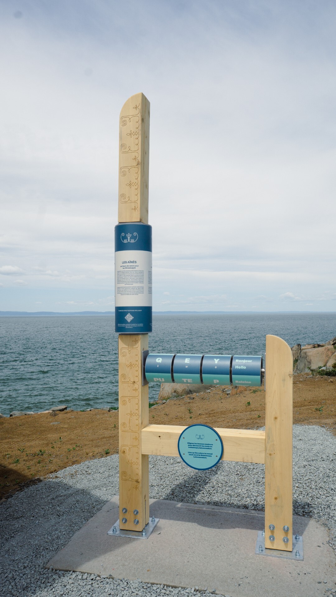 Ce projet s’inscrit dans le cadre de l’initiative plus large du site d’observation et centre de recherche Putep’t-awt Cacouna. L’interaction, ainsi que les aspects ludiques et éducatifs, ont été au cœur du processus de co-création pour offrir une expérience unique et riche en histoire, adaptée à tous les âges. Ce parcours est niché dans ce magnifique paysage maritime.