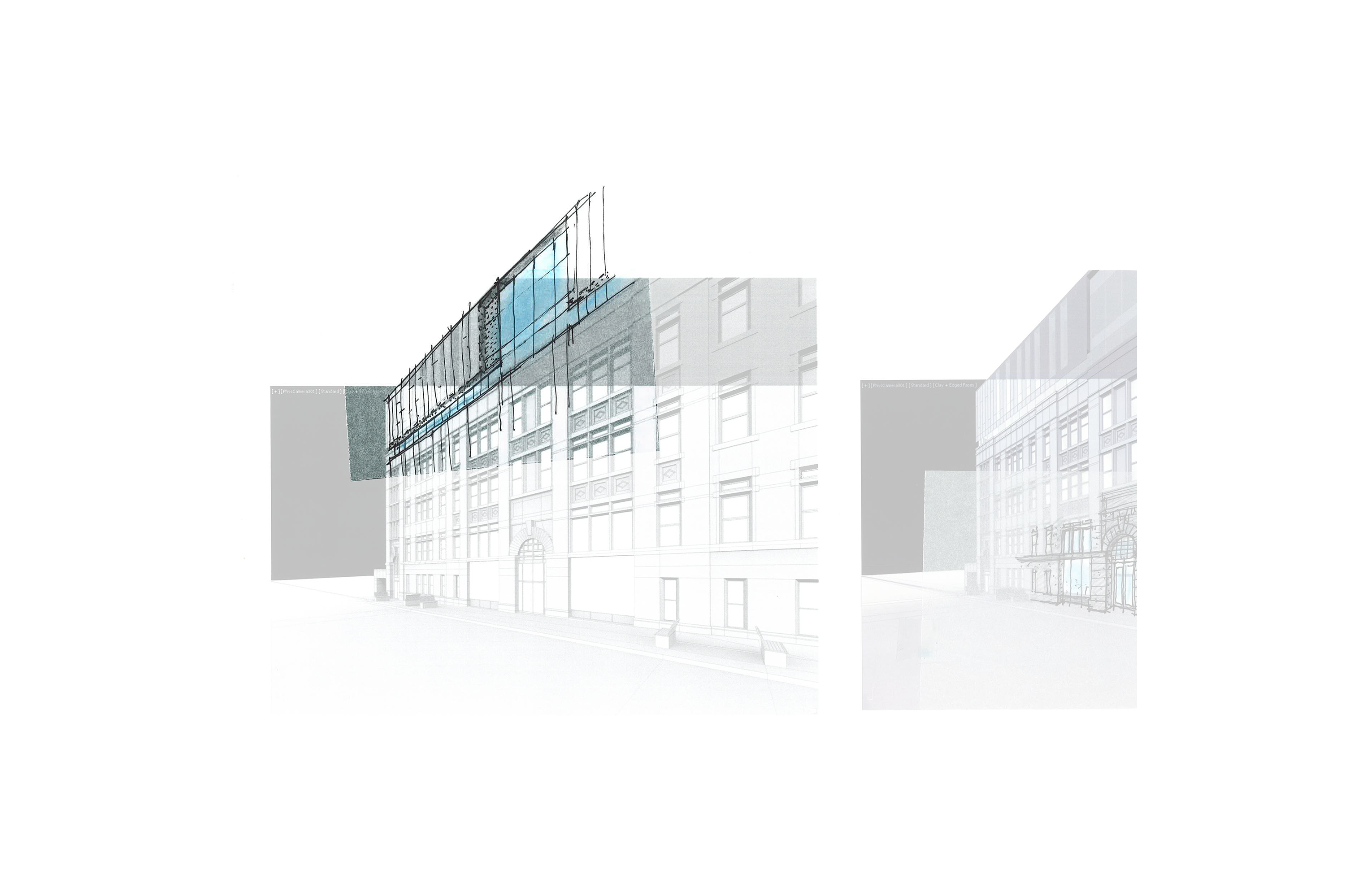 La proposition architecturale s’articule dans une installation tripartite. Le bâtiment original ayant une façade d’expression néo-classique , confirme sa prestance et son caractère dominant avec un socle en pierre de taille et un corps de bâtiment revêtu d’un assemblage de briques et de pierre artificielle. Cet ensemble est désormais accompagné d’un nouveau couronnement constitué d’une architecture contemporaine, ouverte et poreuse.