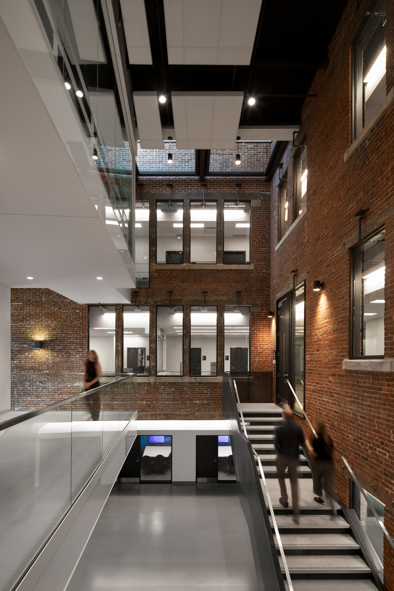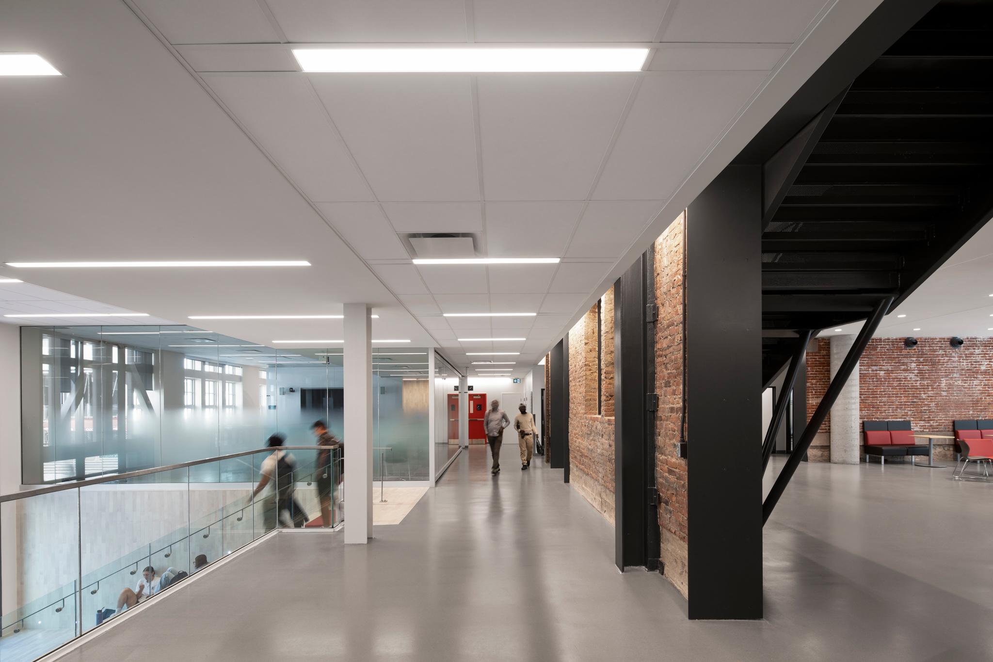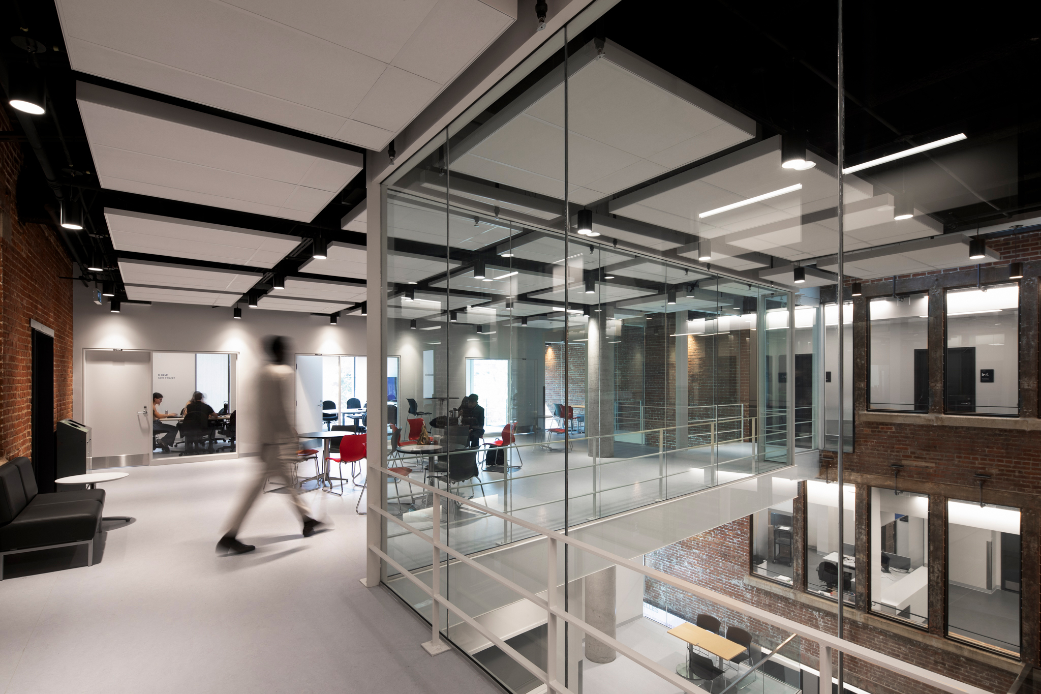 Cette adjonction de langages architecturaux différenciés, harmonieux dans leur dialogue, signale le nouveau statut du lieu. Grâce à cet agrandissement contemporain de deux étages, le nouveau pavillon peut désormais accueillir 1 500 personnes dans des espaces d’apprentissage et de collaboration dotés d’équipements audiovisuels de pointe.