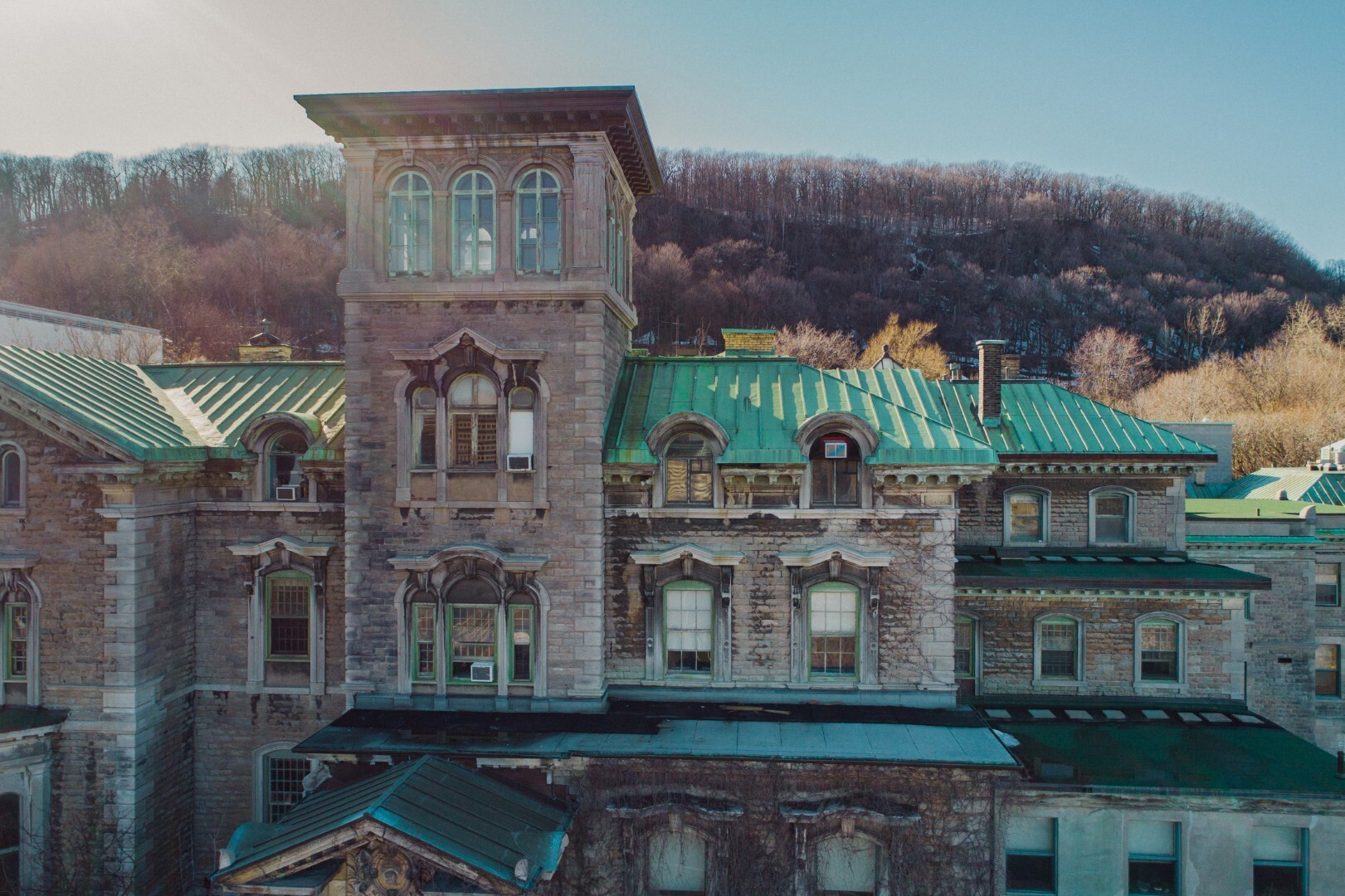 Le site de l’ancien hôpital Royal Victoria (HRV) est un ensemble institutionnel emblématique de Montréal. Née d’une initiative philanthropique à la fin du 19e siècle, l’institution élargit son emprise sur la face sud du parc du Mont-Royal au fil de ses agrandissements. Le site forme ainsi un paysage unique sur les flancs de la montagne, avec des pavillons de volumétries et de constructions variées. Depuis la fermeture de l’hôpital, la majorité de ces derniers sont vacants.
