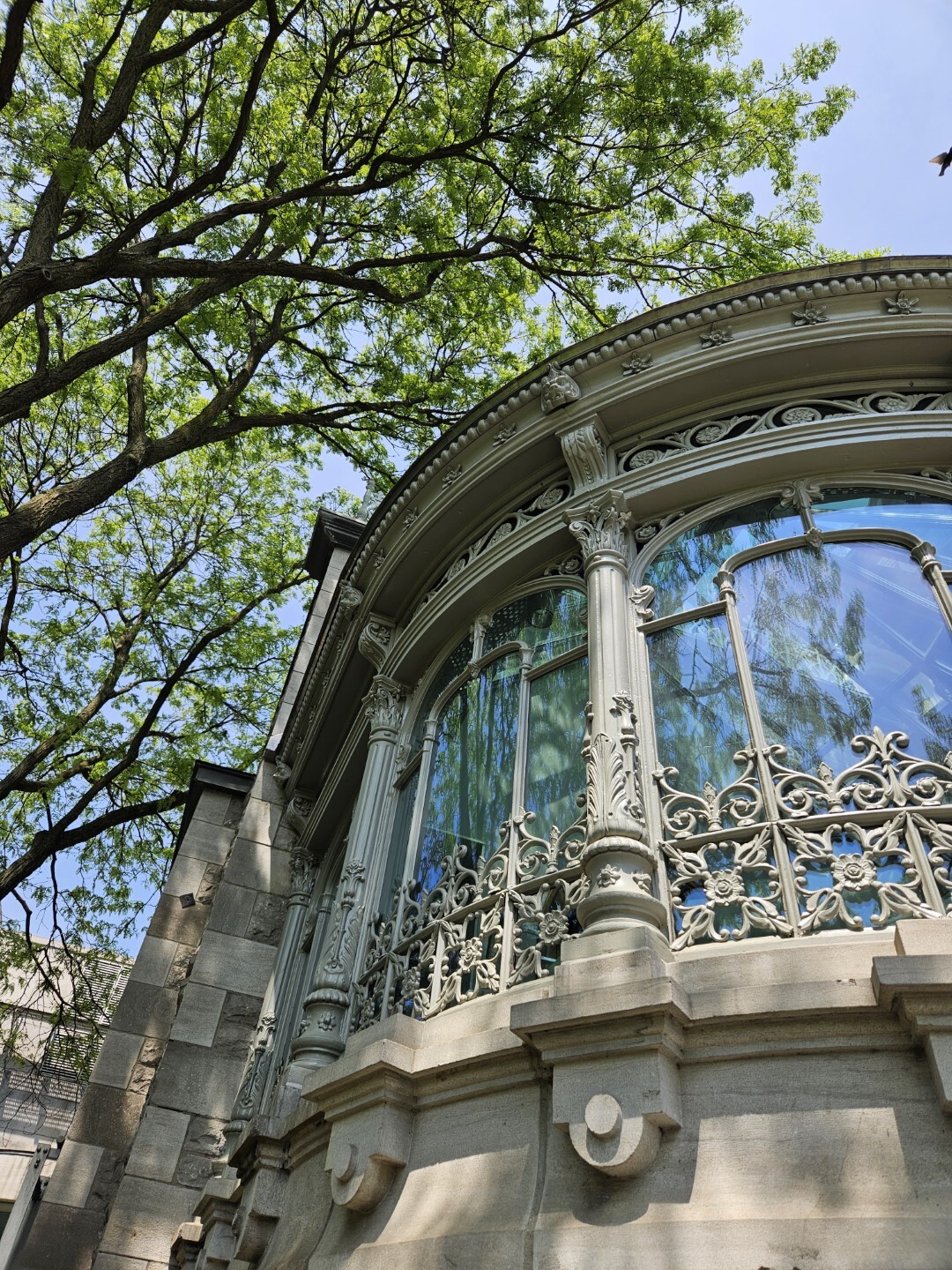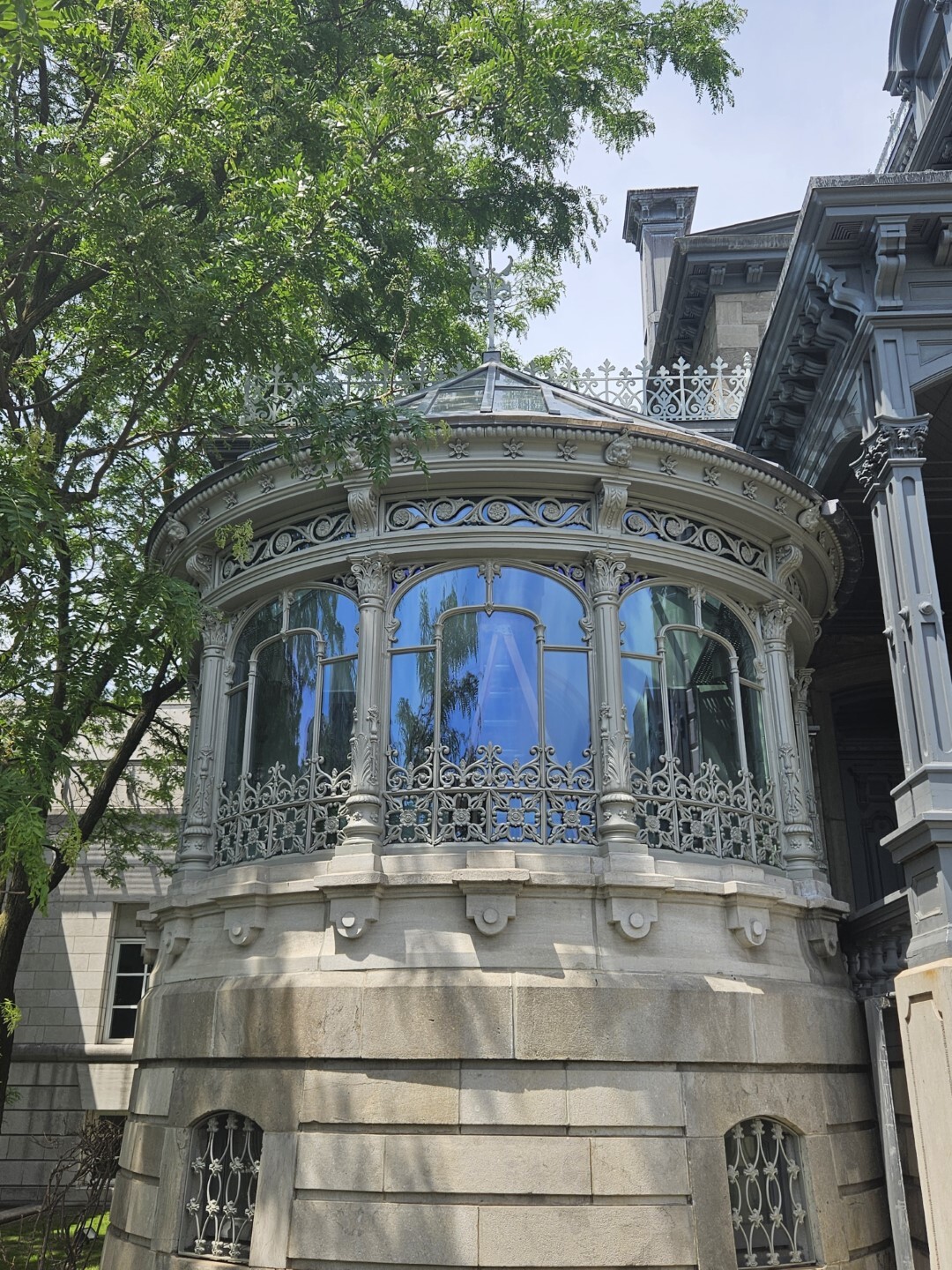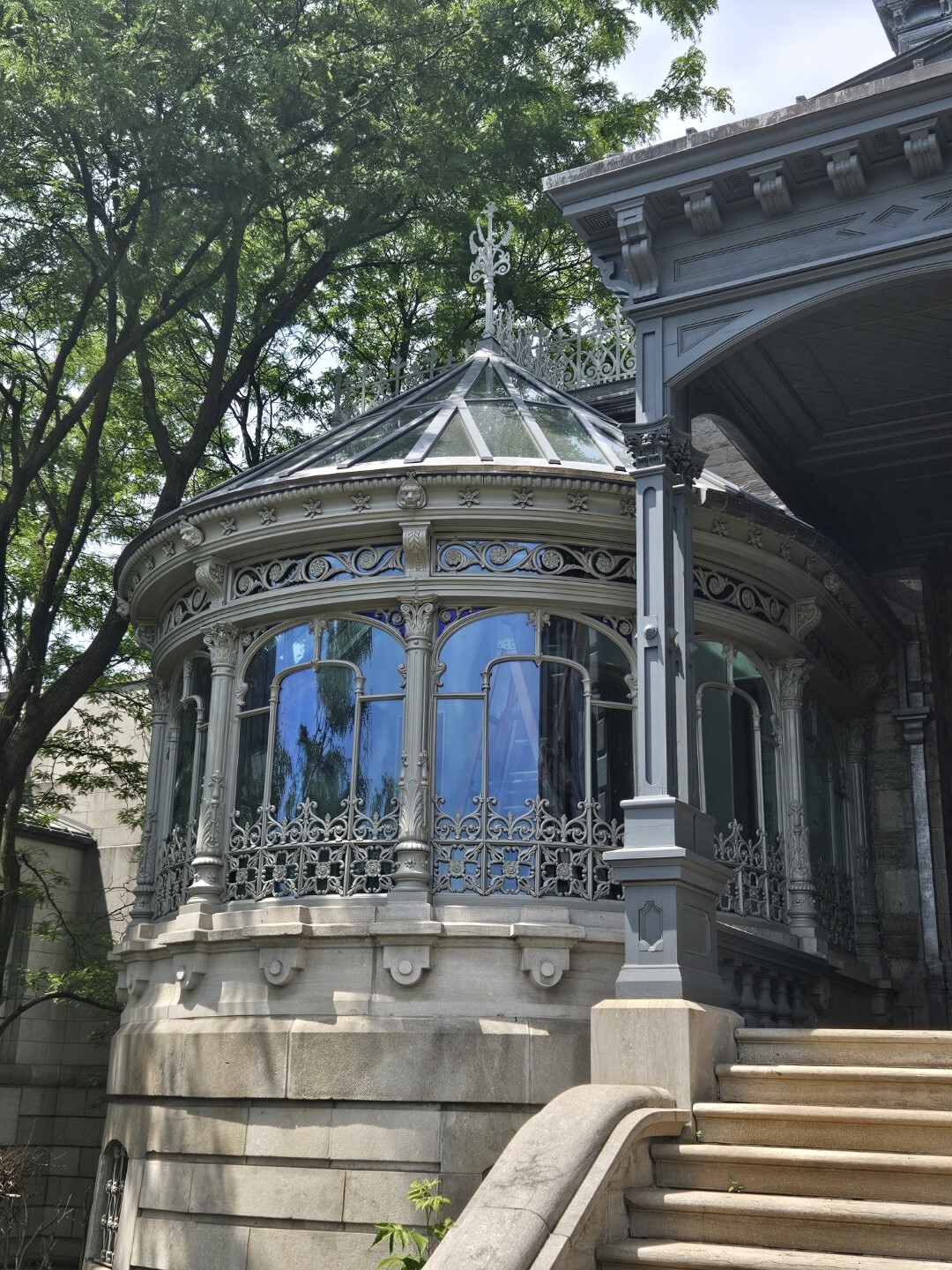 À titre d’architecte en patrimoine, EVOQ s’est vu confier le mandat de restaurer la serre de la Maison Shaughnessy. Construite en 1874-75, cette maison jumelée bourgeoise est implantée dans le secteur du Mille Carré Doré, un quartier résidentiel rythmé de maisons opulentes entourées de magnifiques jardins. Elle est aujourd’hui intégrée au complexe du Centre Canadien d’Architecture (CCA). La serre semi-circulaire est l'une des pièces maîtresses de cette ancienne résidence. Il s’agit d’un ouvrage remarquable de fonte avec un toit conique vitré. Bien qu’une importante campagne de restauration ait été entreprise en 1989, le vitrage a désormais atteint sa durée de vie utile, plusieurs assemblages semblent déficients et une grande partie de la fonte décorative extérieure présentait des signes de détériorations. EVOQ a ainsi entrepris la restauration des composantes altérées de la serre, tout en améliorant la performance énergétique de son enveloppe.